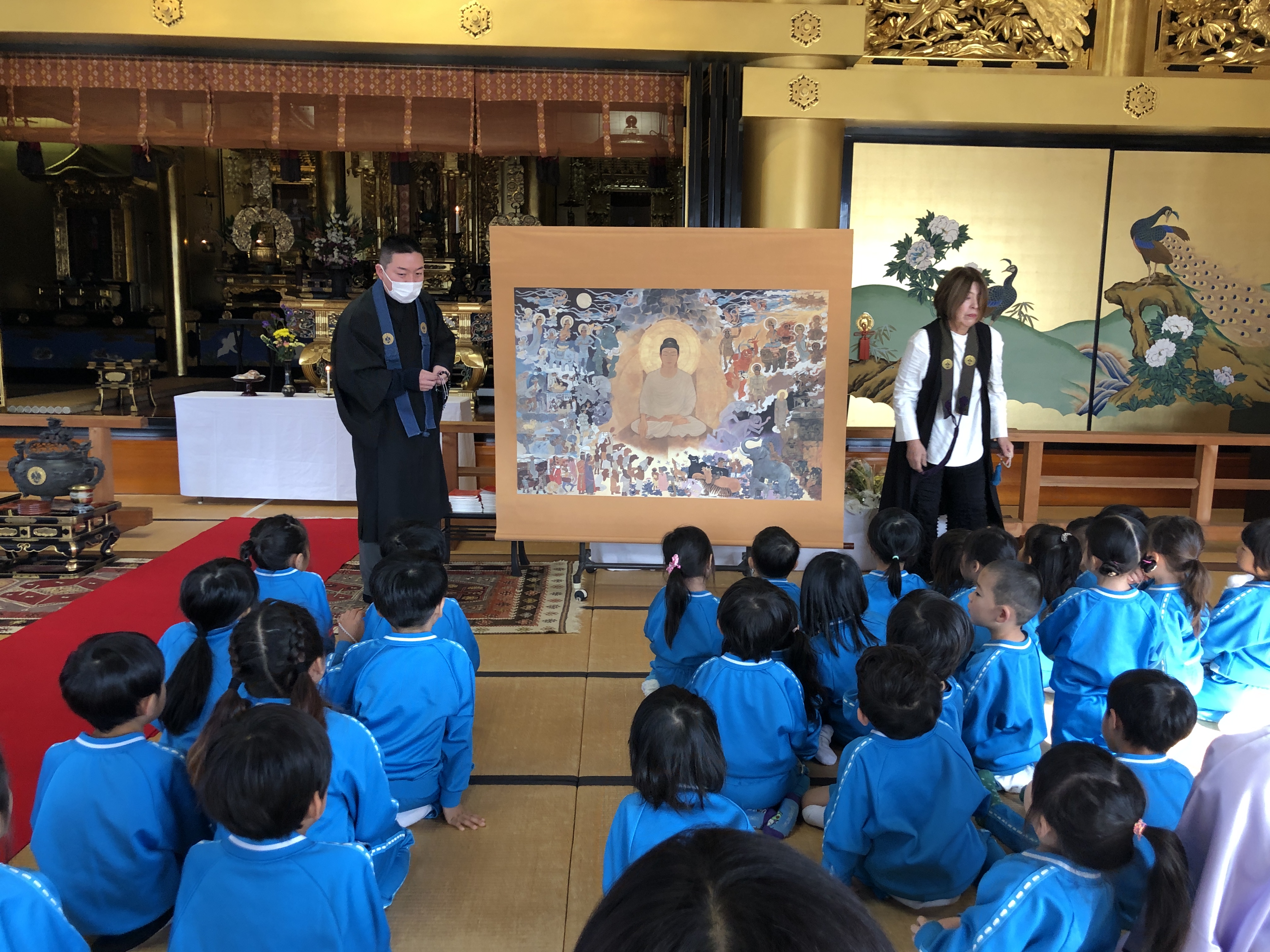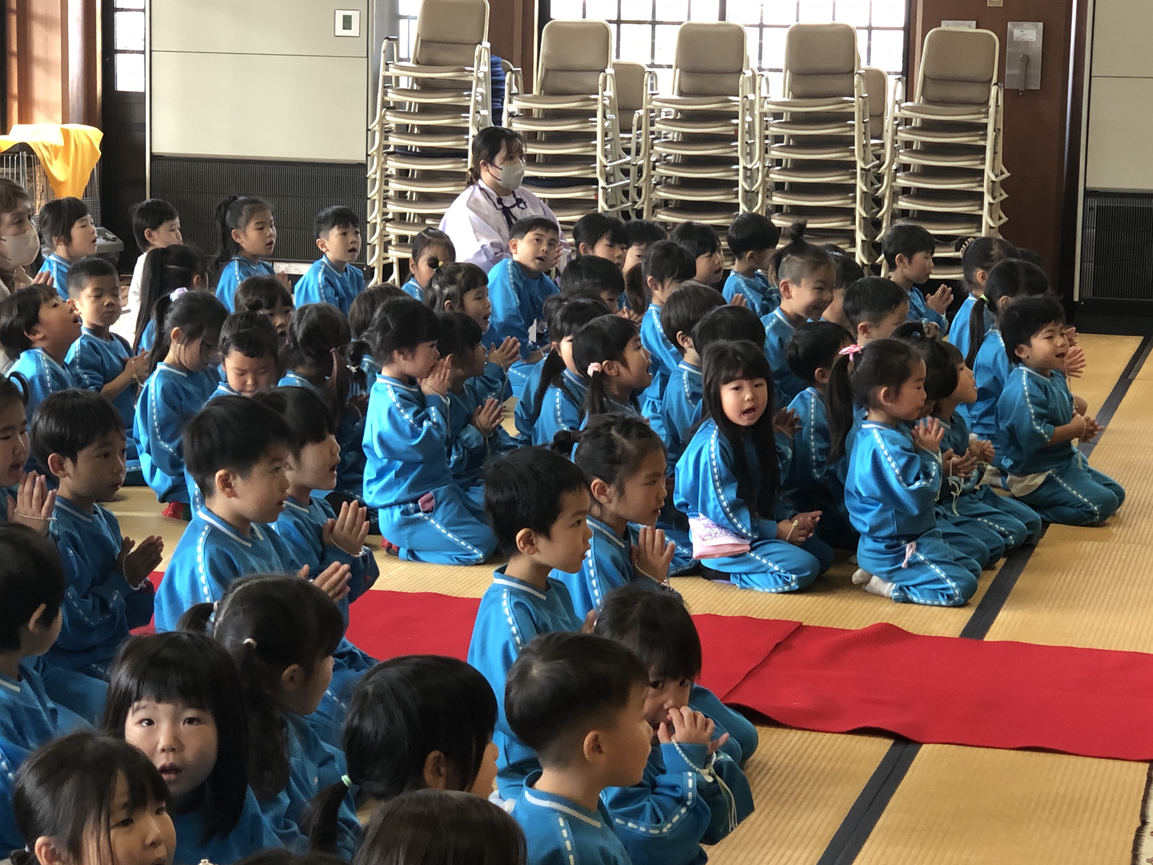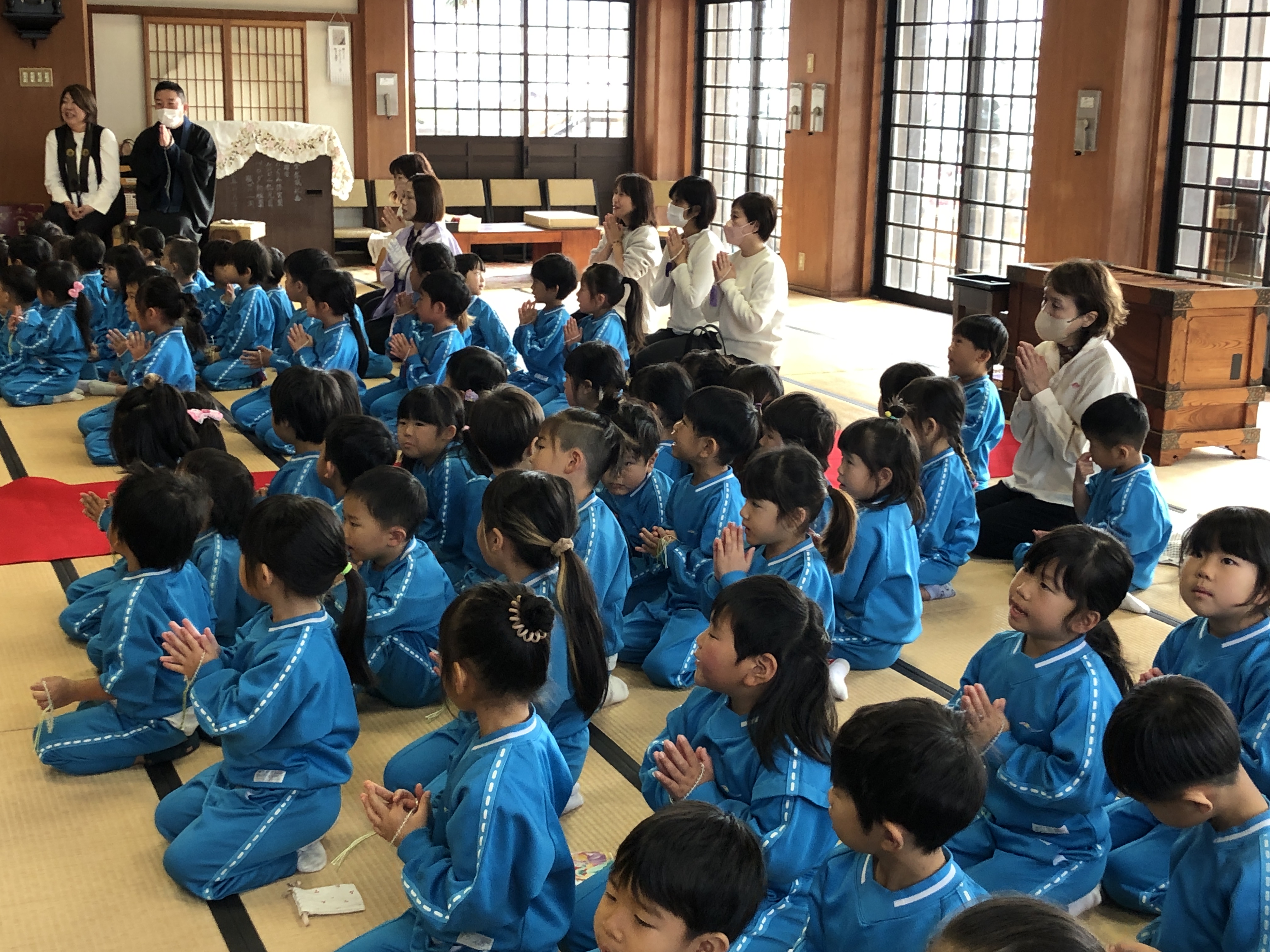〇私たちは、お話をよく聞きます。〇私たちは、みんな仲良くいたします。南無阿弥陀仏、合掌。