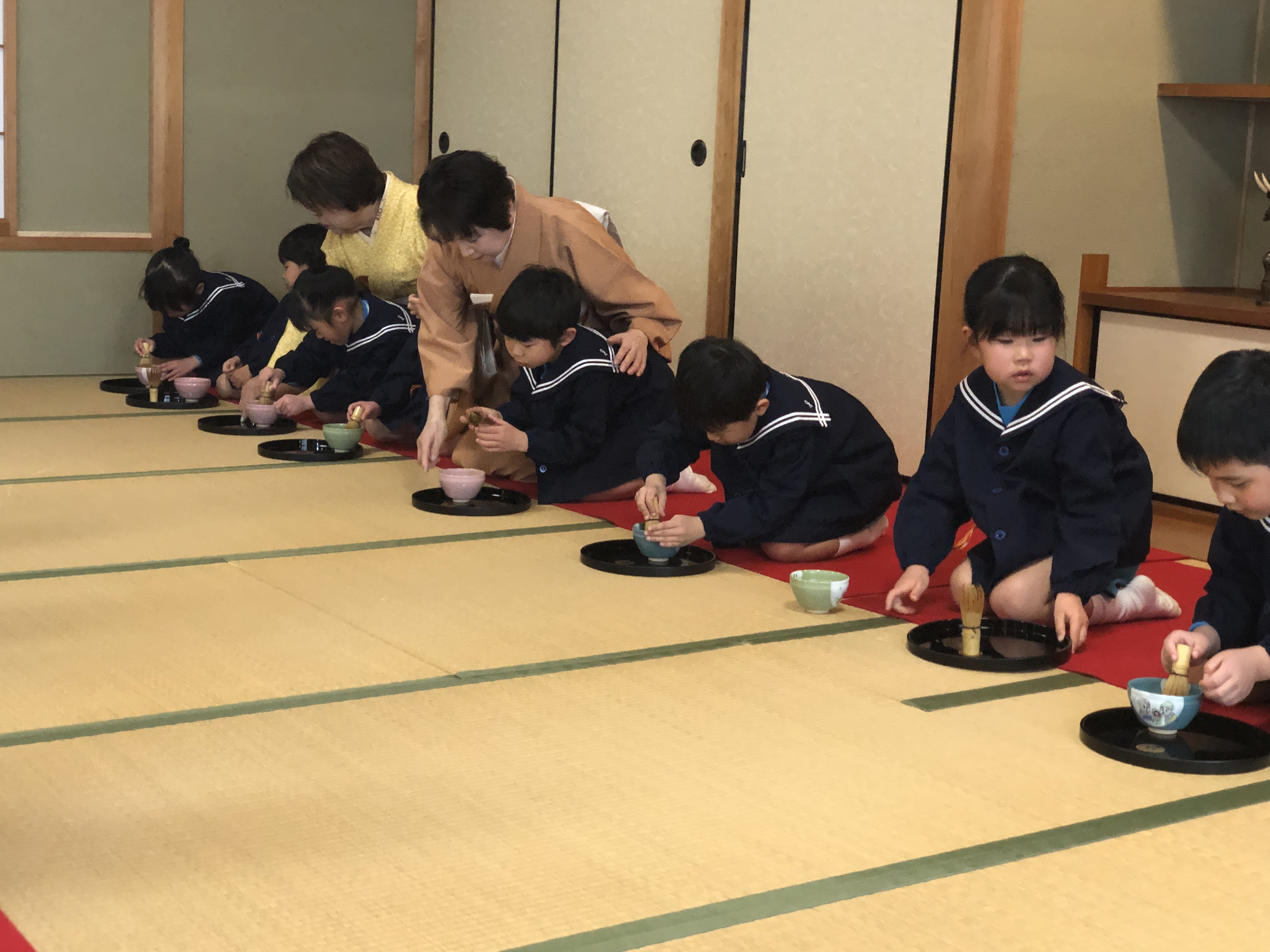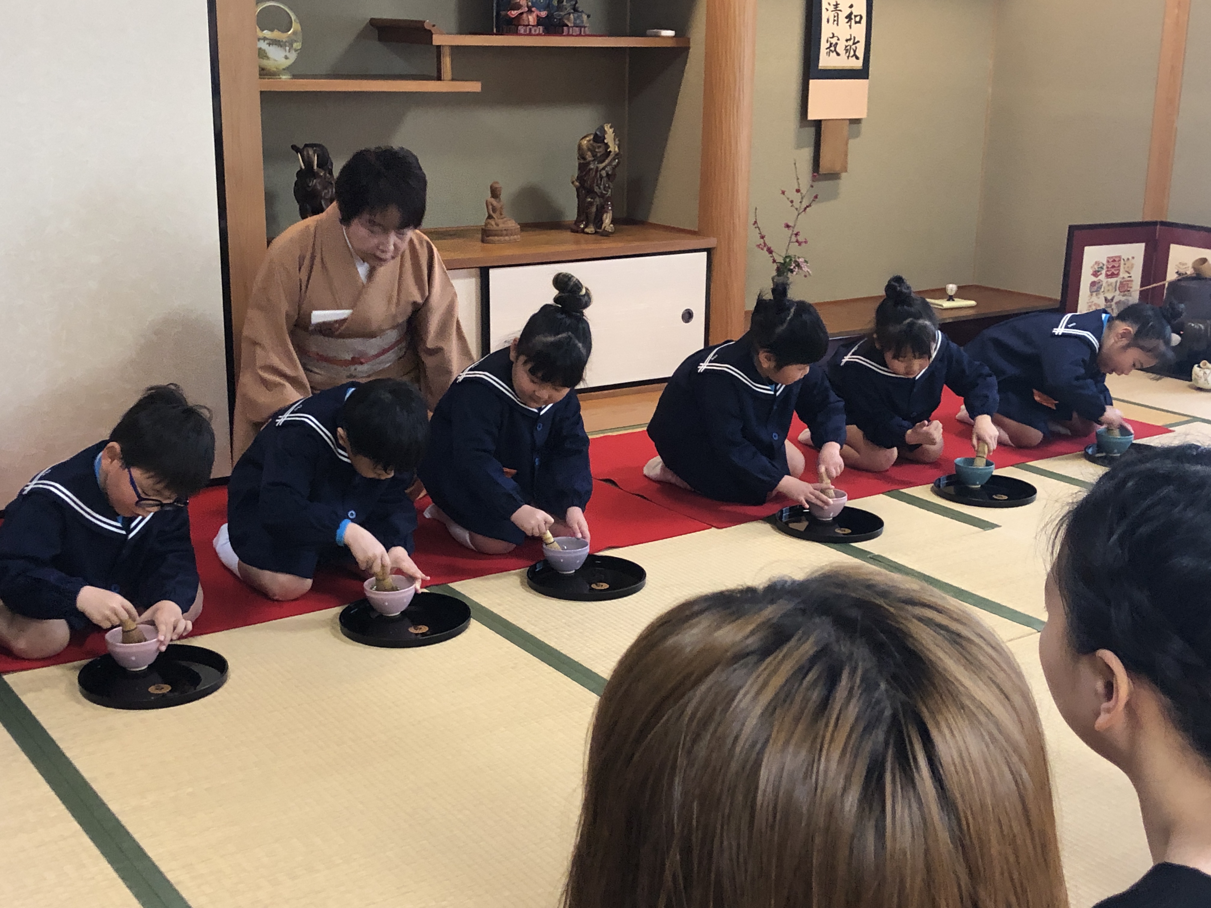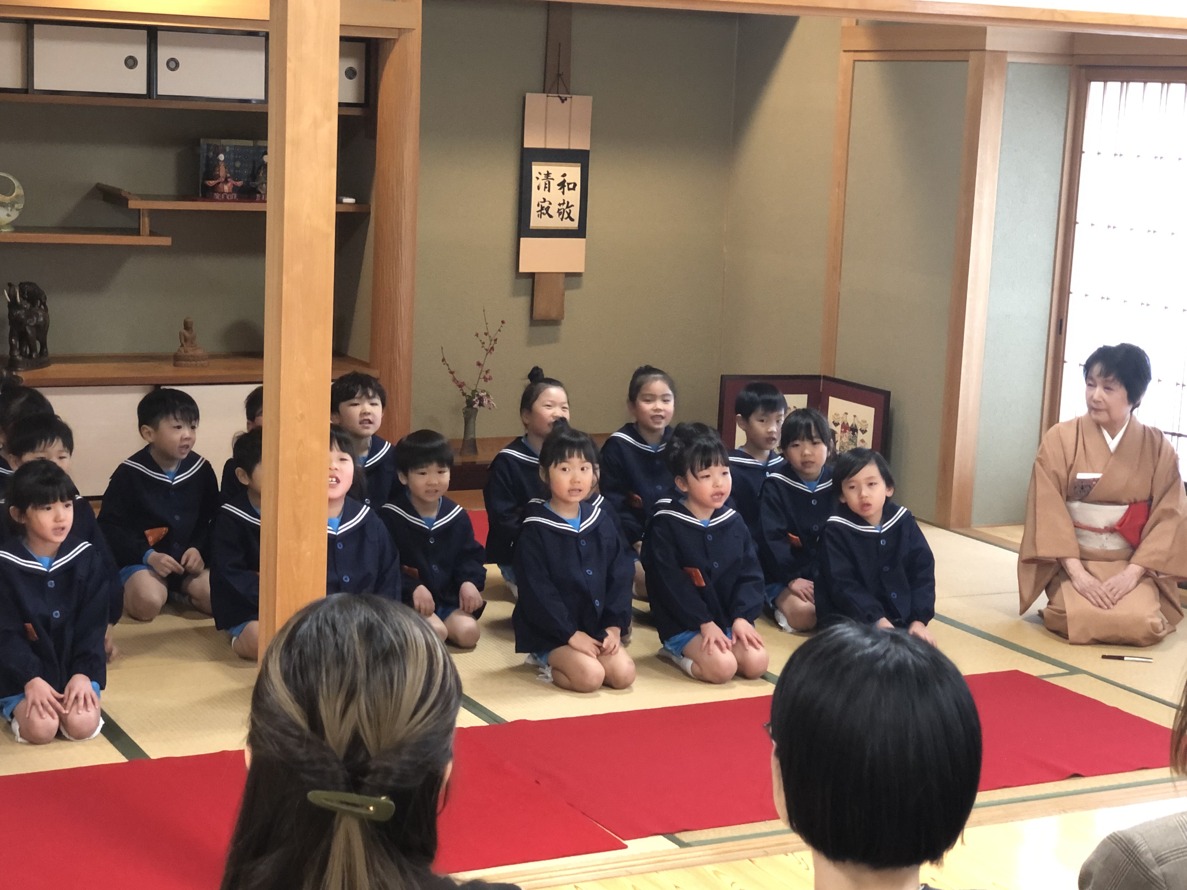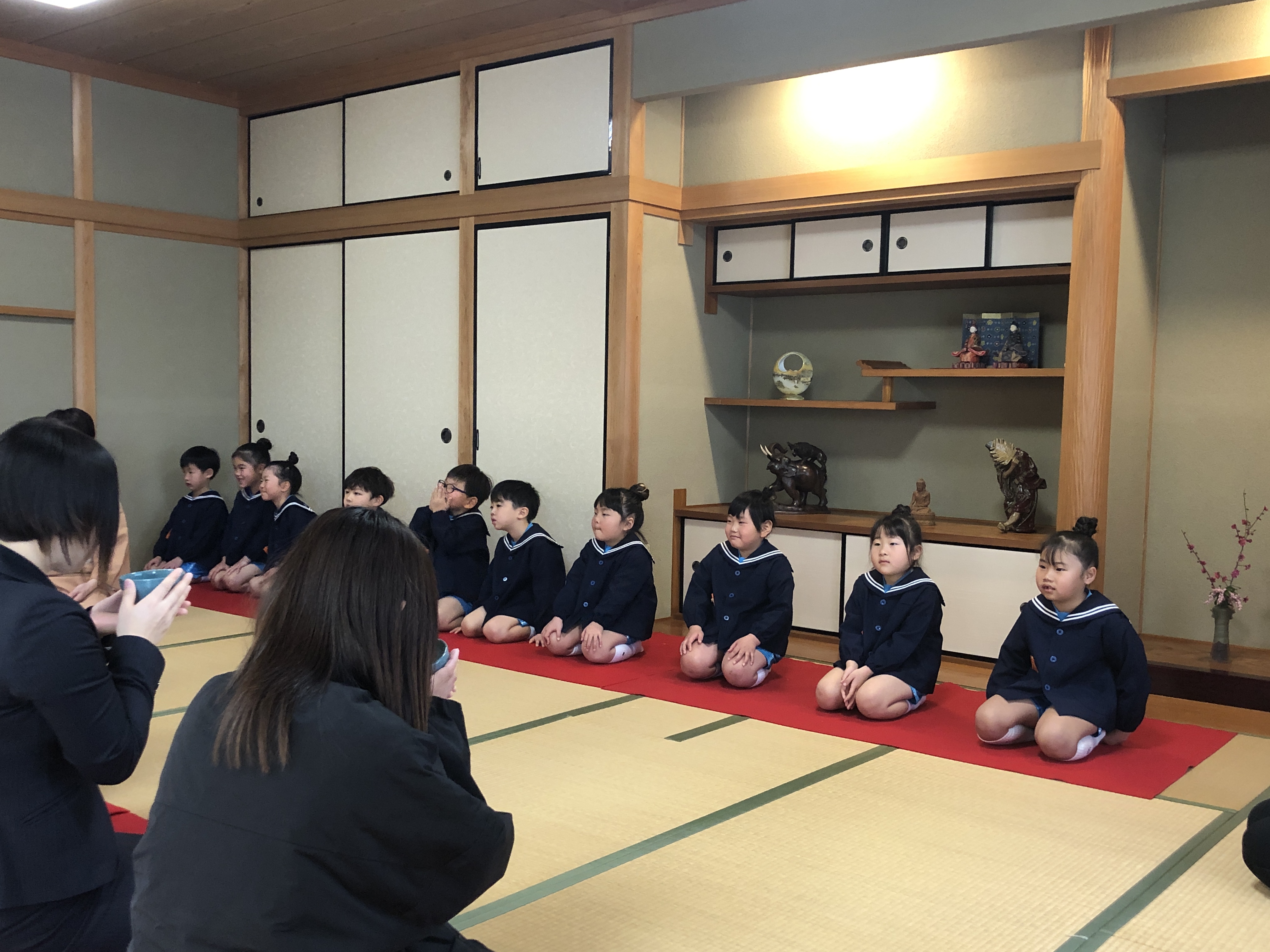 もうすぐ卒園の日を迎える さくら組のお友だちが、茶道教室で1年間学んだお稽古の成果を披露する卒園茶会が開かれ、立派に成長した姿をお家の方に見ていただきました。