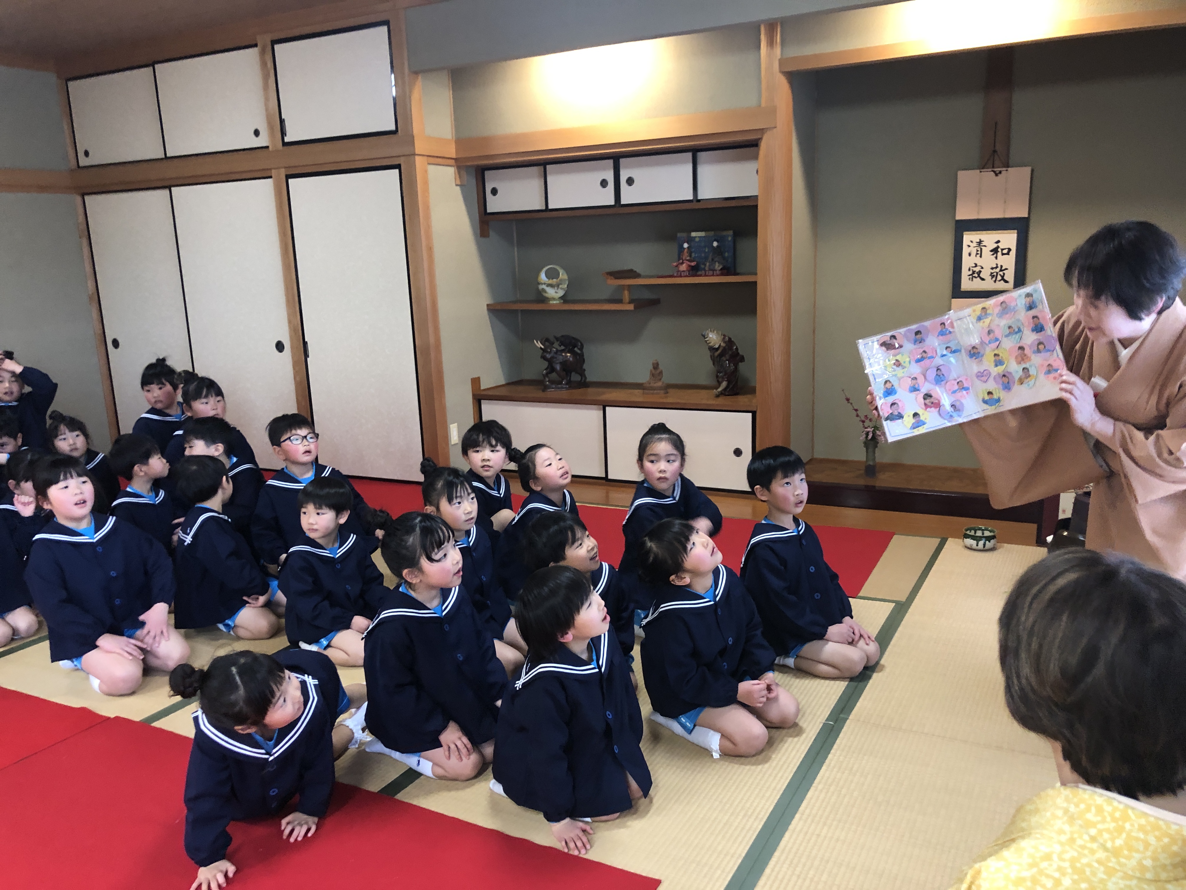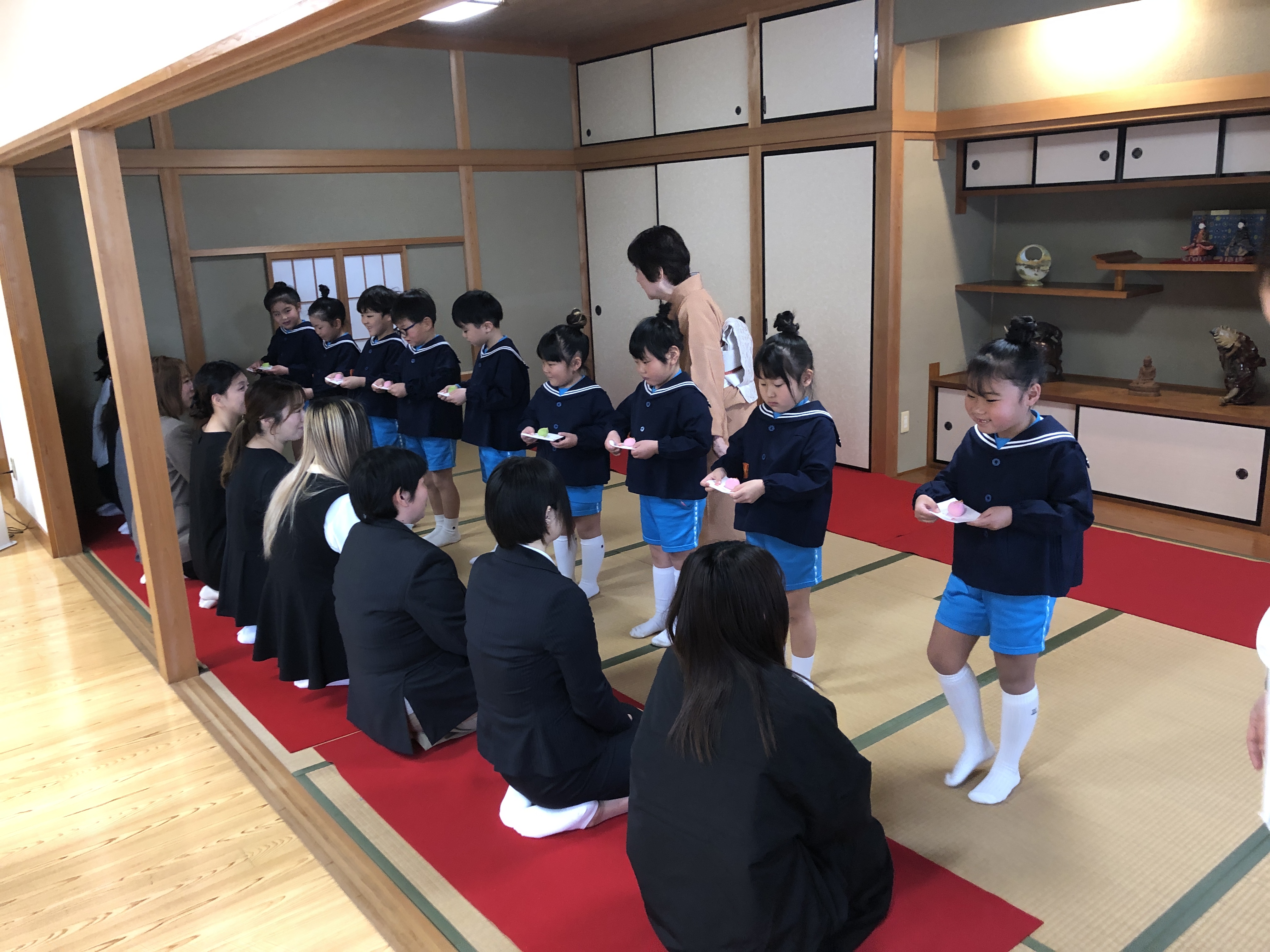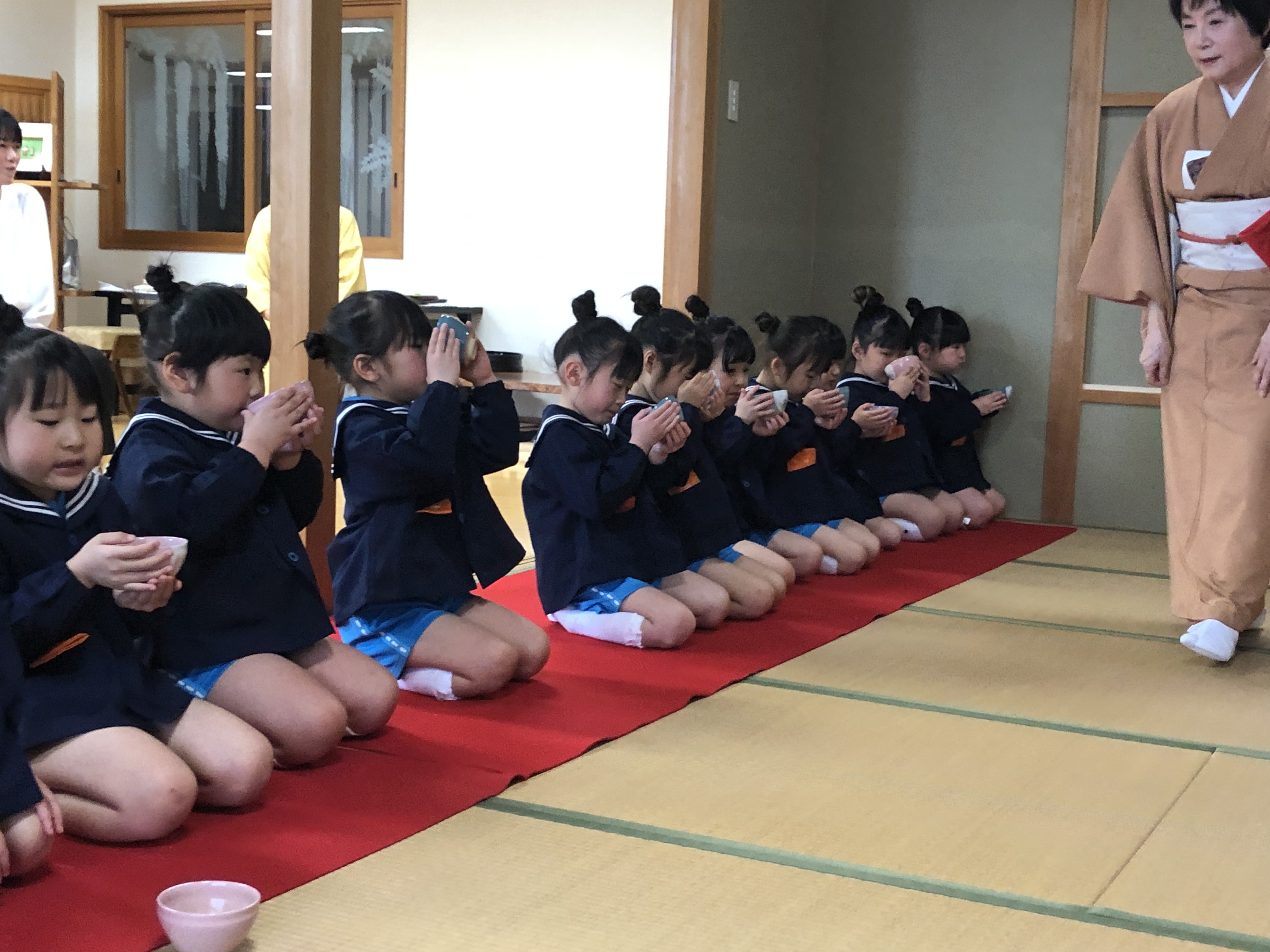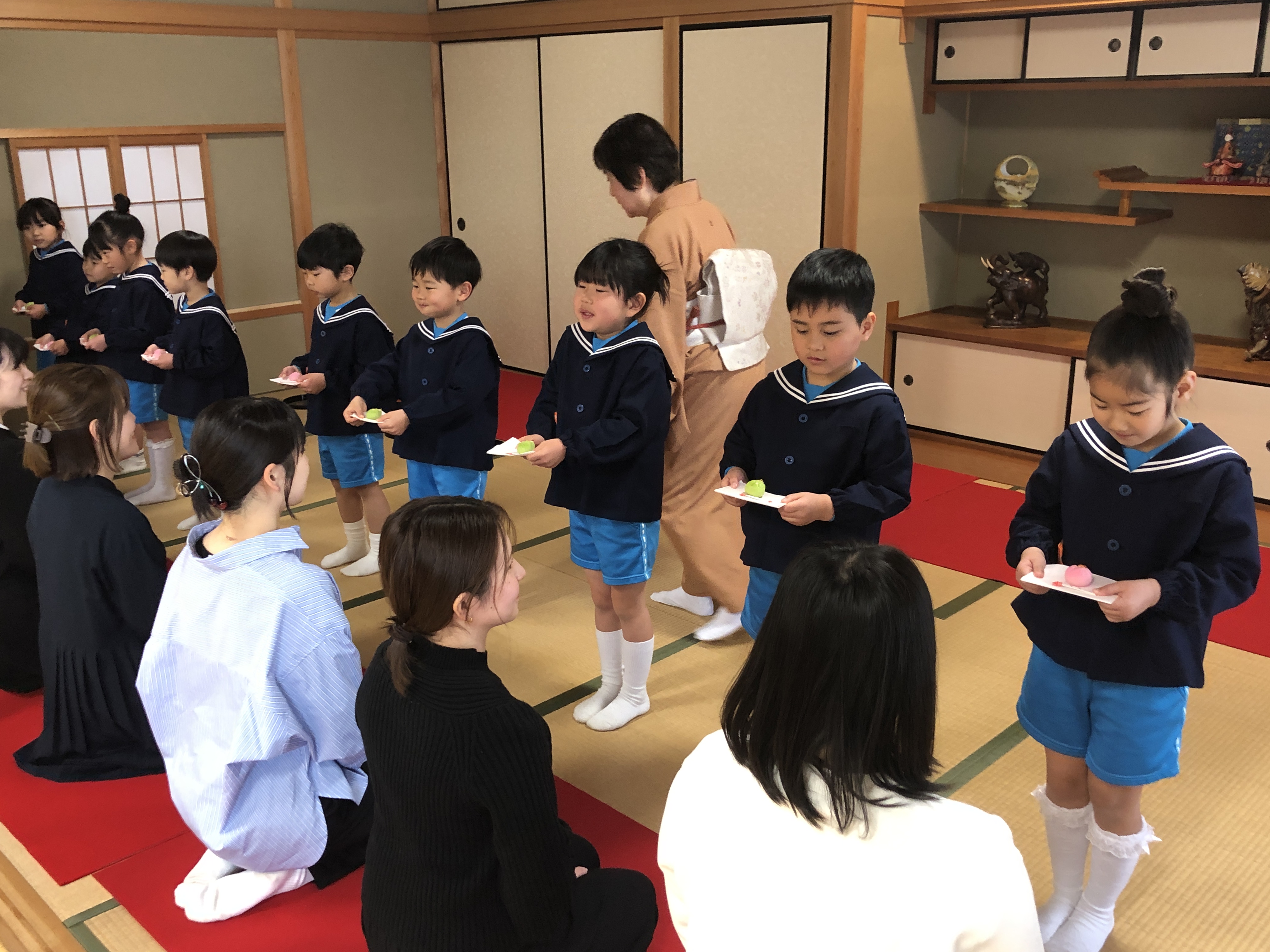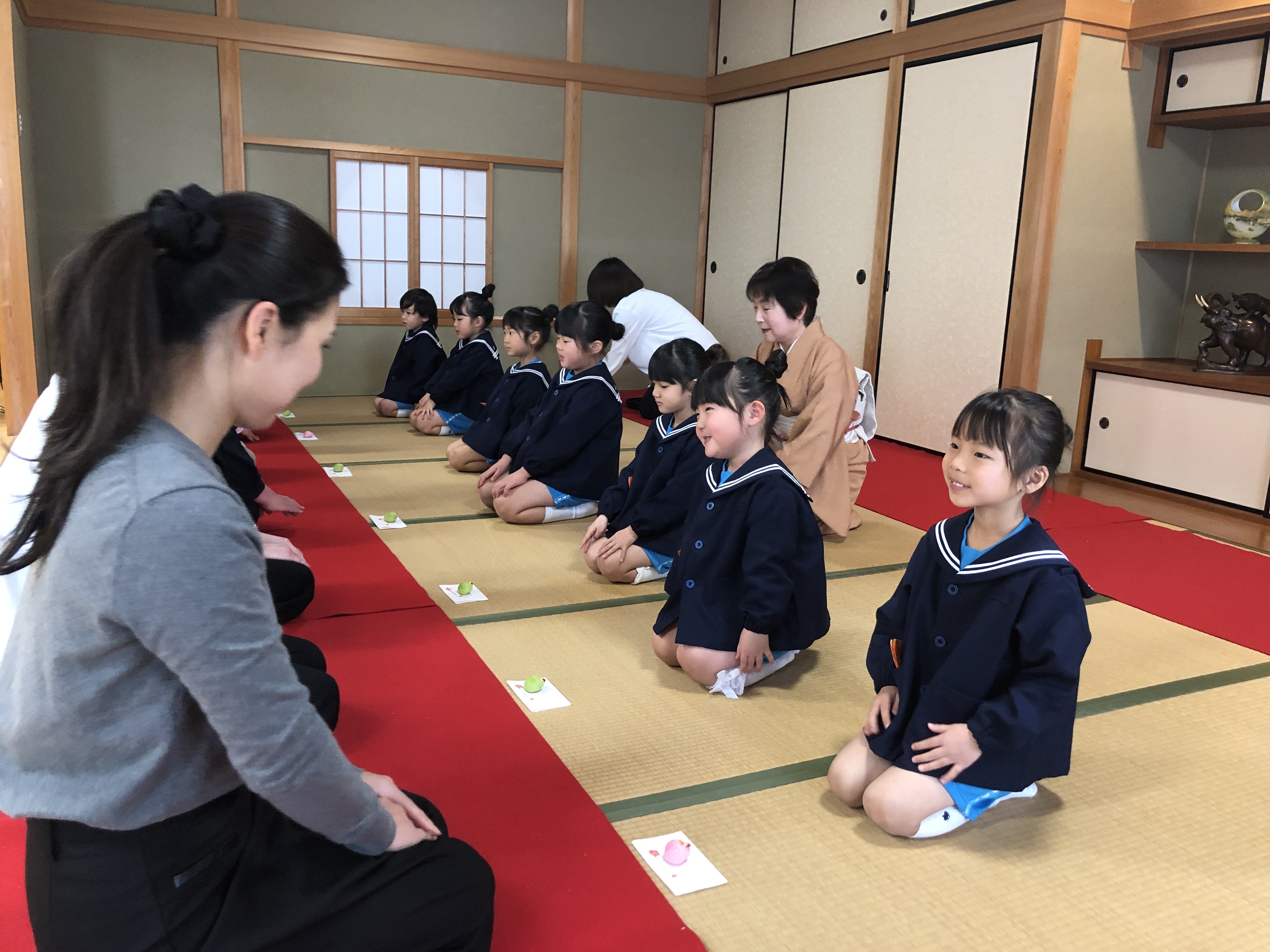 もうすぐ卒園の日を迎える さくら組のお友だちが、茶道教室で1年間学んだお稽古の成果を披露する卒園茶会が開かれ、立派に成長した姿をお家の方に見ていただきました。