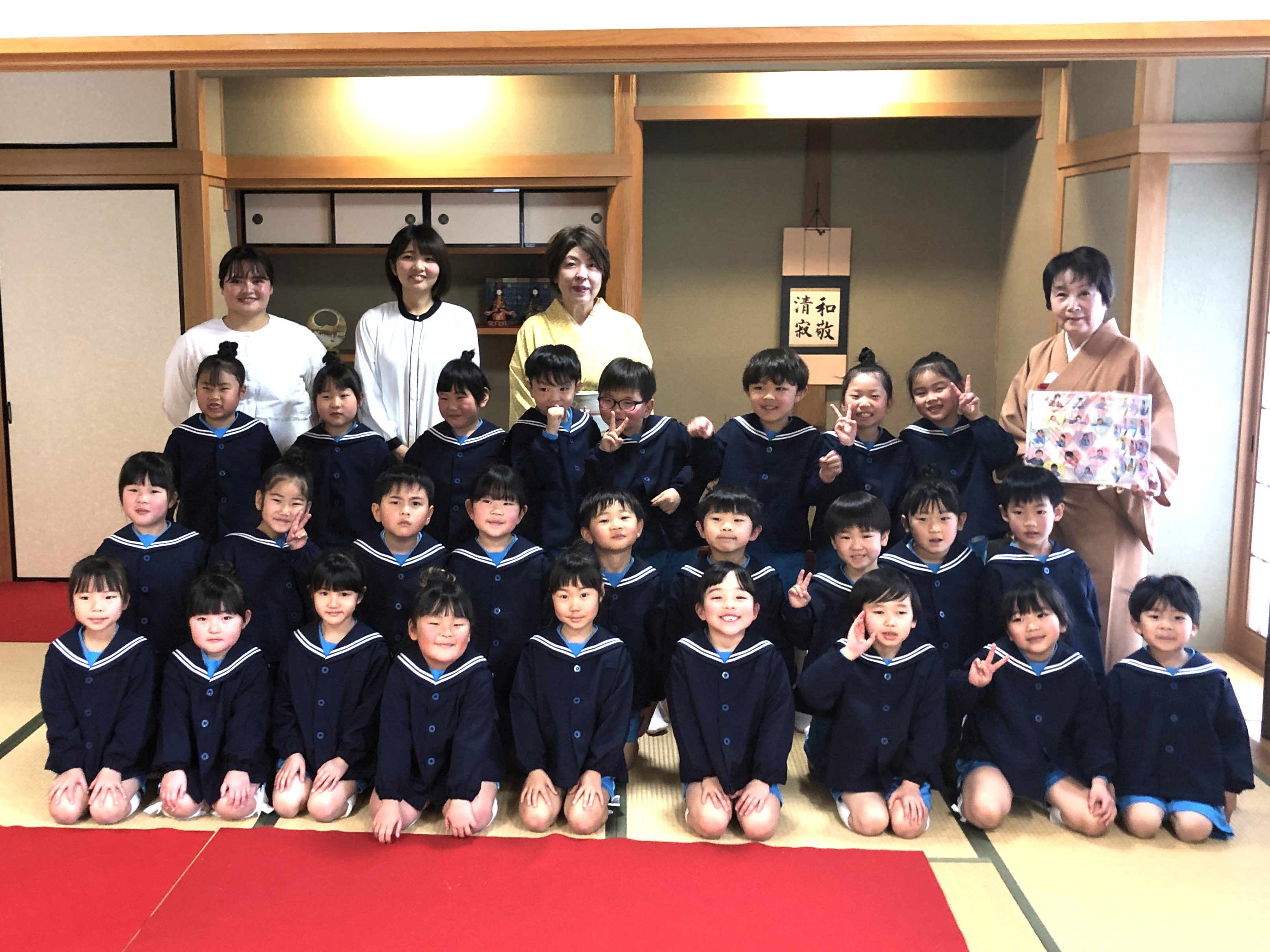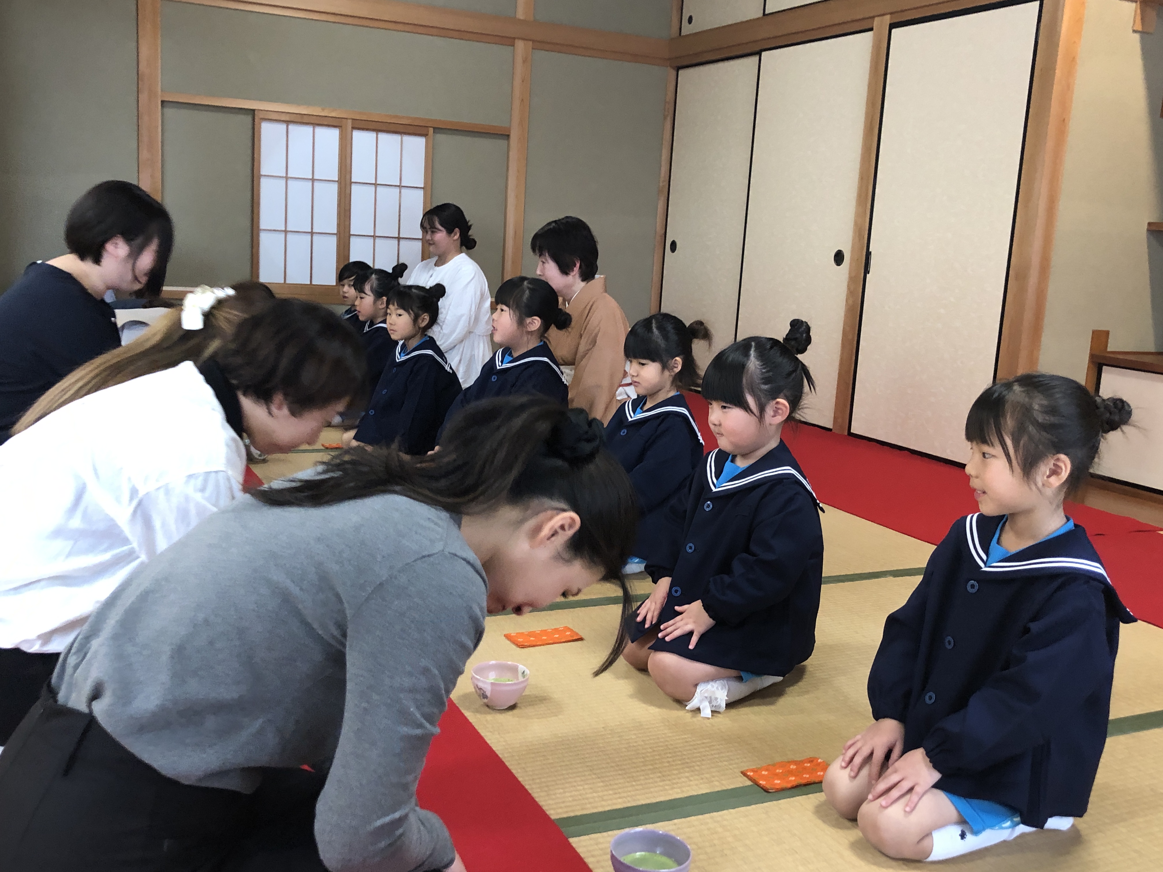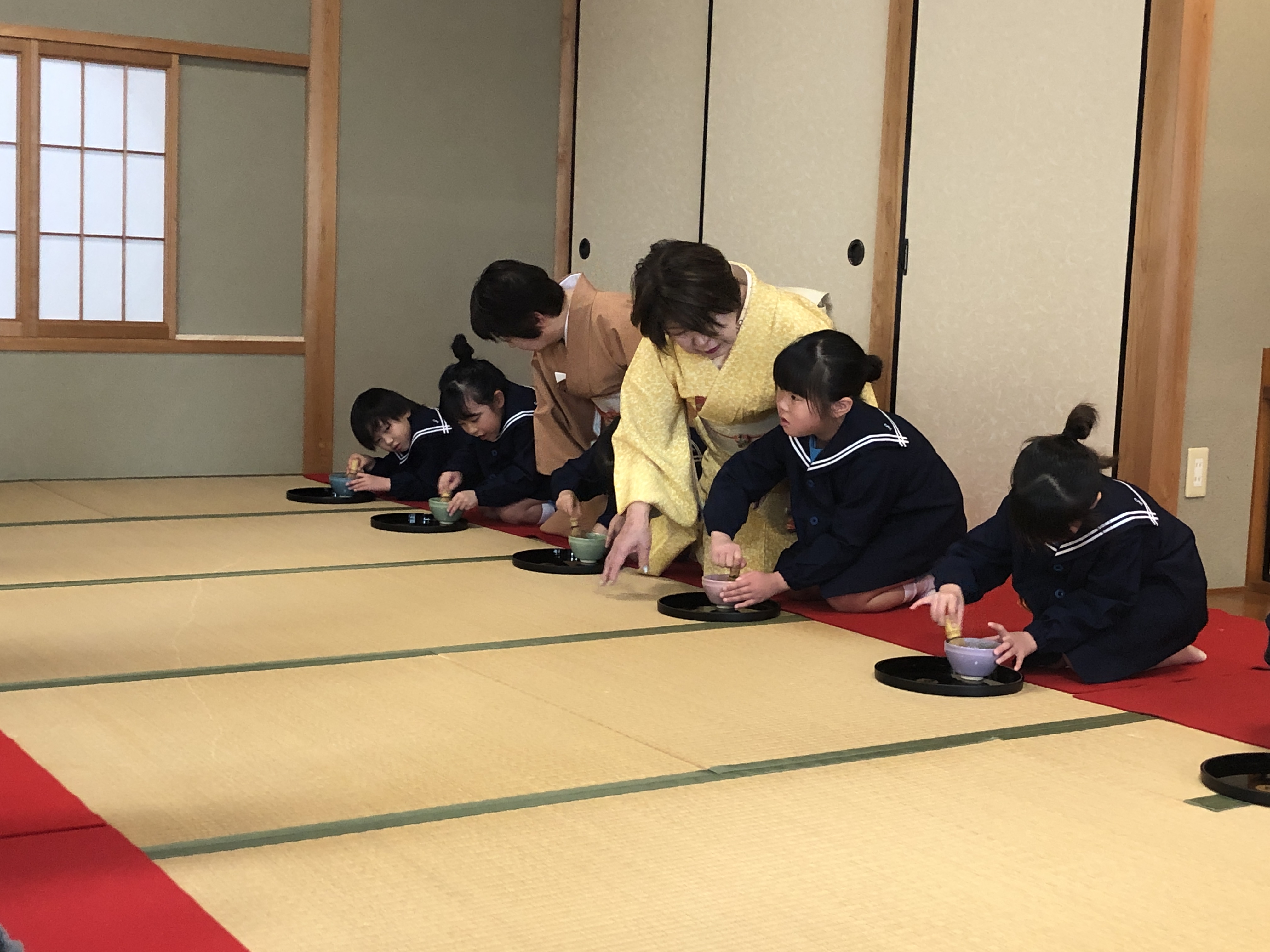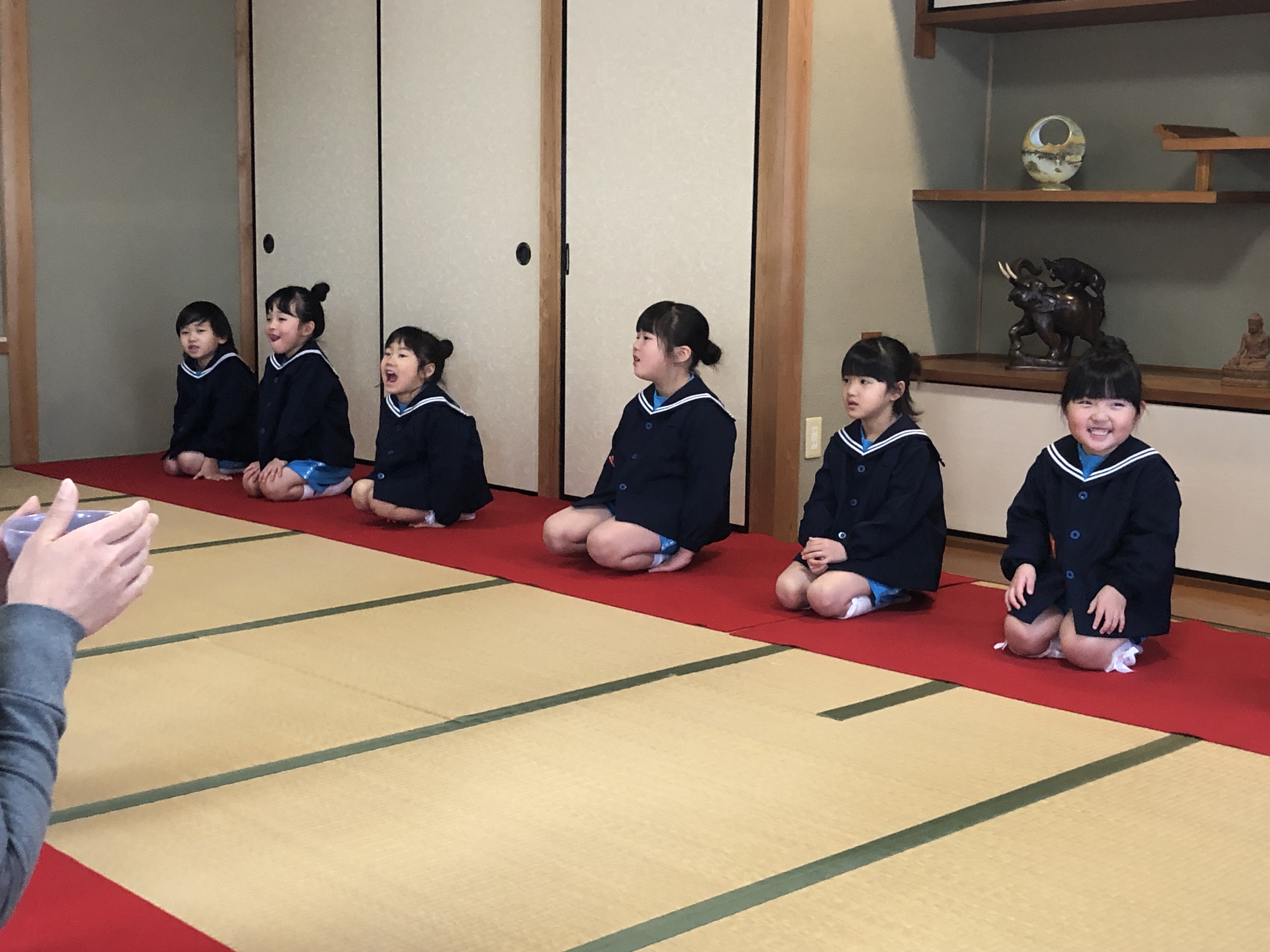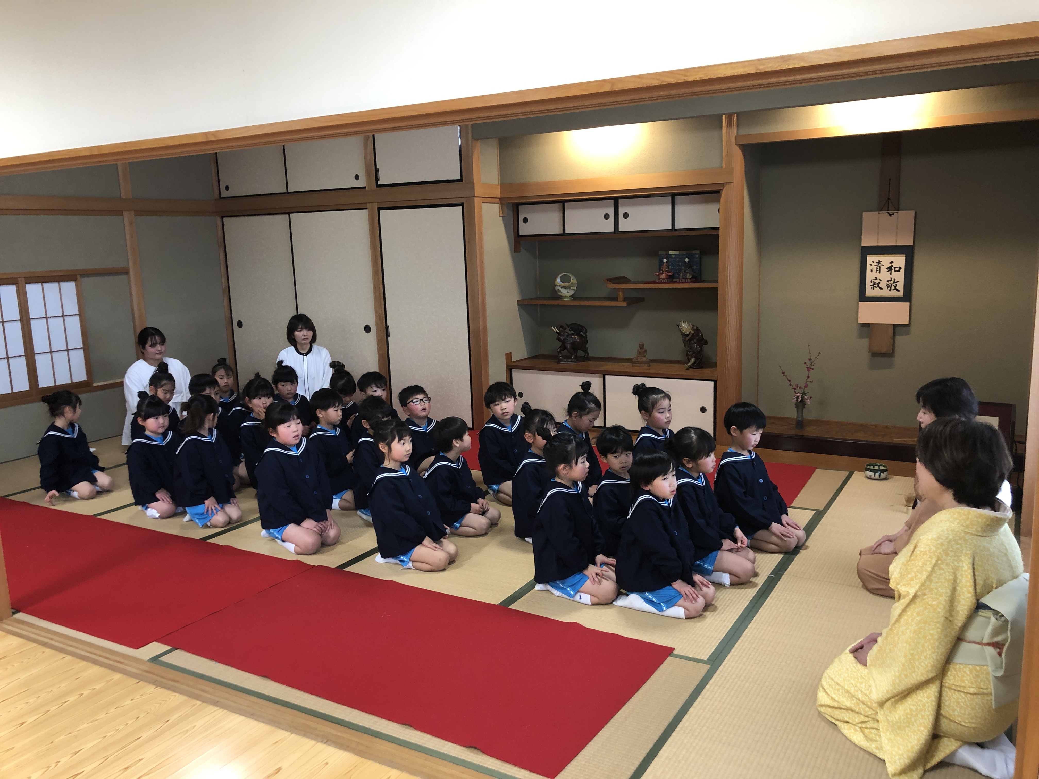 もうすぐ卒園の日を迎える さくら組のお友だちが、茶道教室で1年間学んだお稽古の成果を披露する卒園茶会が開かれ、立派に成長した姿をお家の方に見ていただきました。