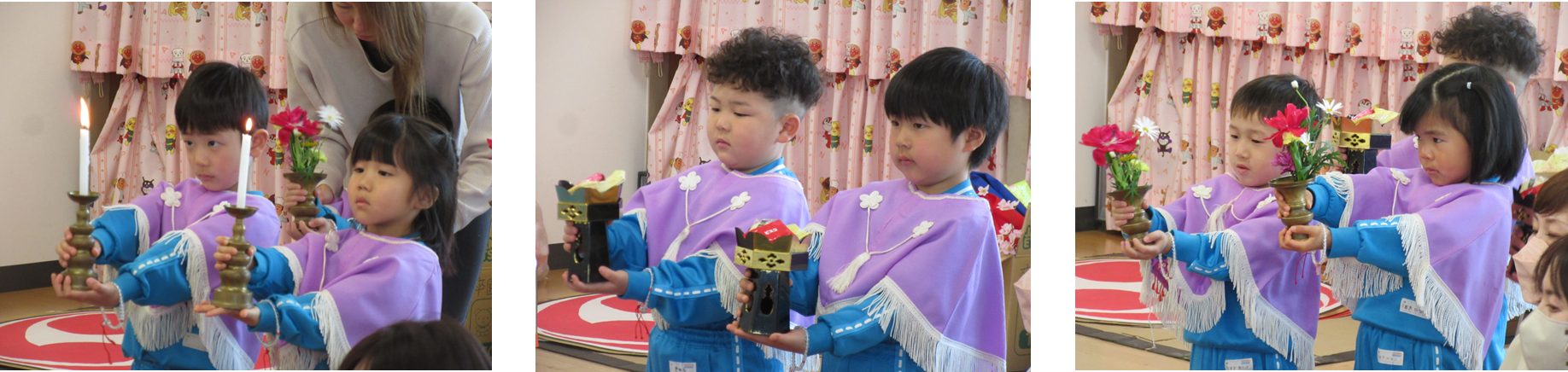 年中さんが、献灯・献花・献供をしました。