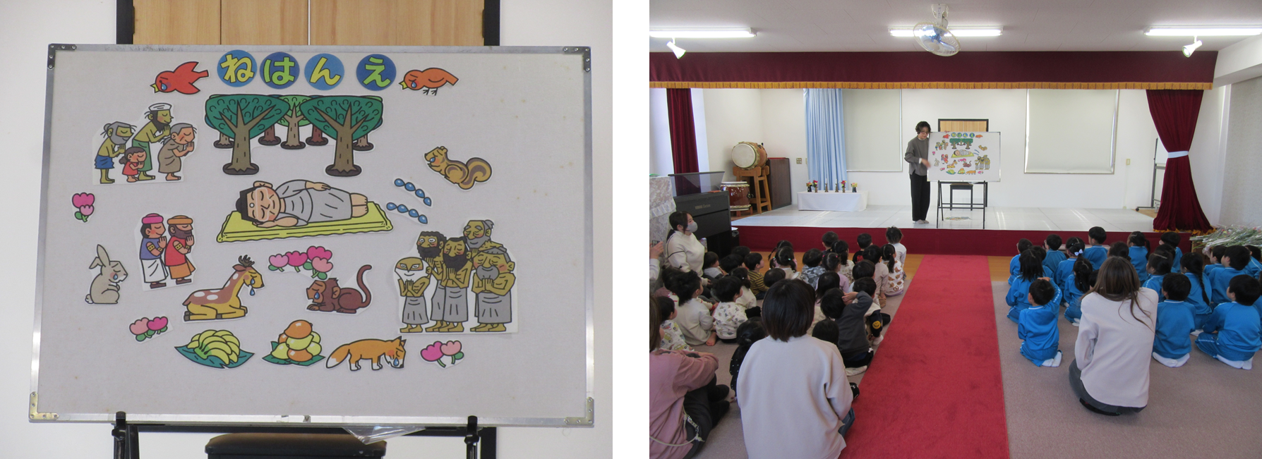 お釈迦様がお亡くなりになるという少し難しいお話でしたが、みんなよく見ていました。