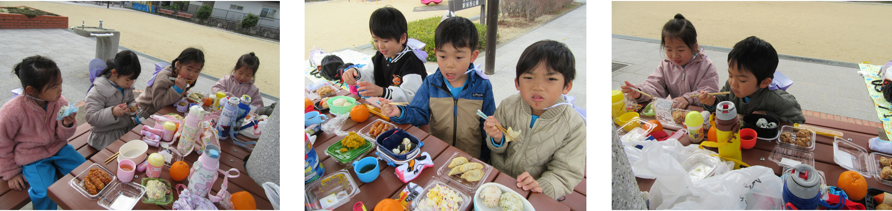 スーパーから公園へ歩いて行き、お昼ご飯を食べました。
