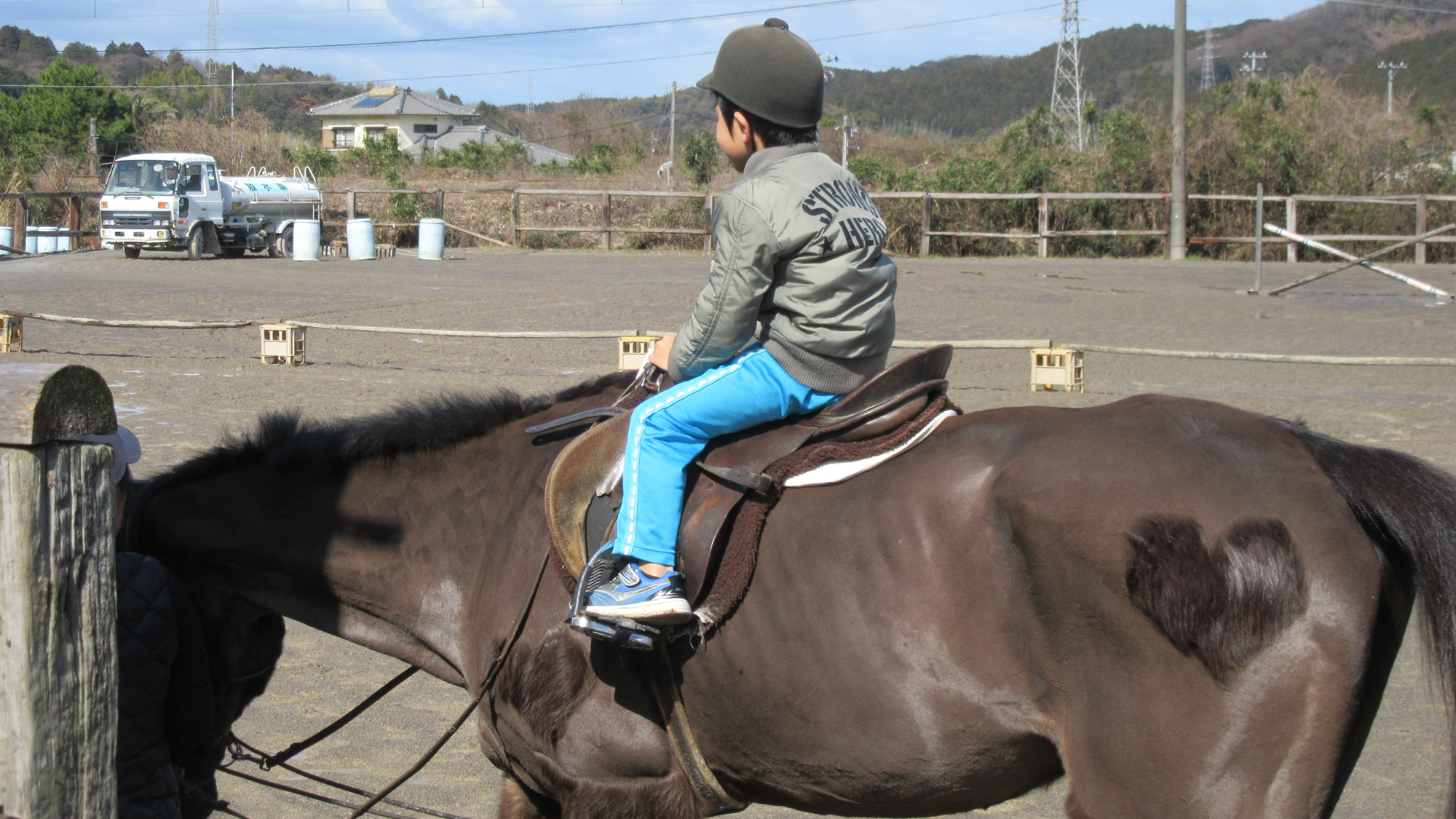 はじめは馬に乗った高さと揺れから緊張気味でしたが、だんだんと慣れて馬に乗りながら手を振ったり馬の鬣をなでたりする余裕まで出できました。