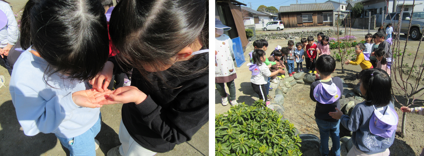 他にも、てんとう虫やモンシロチョウにモンキチョウ、ミツバチなど虫もたくさん見つけました。