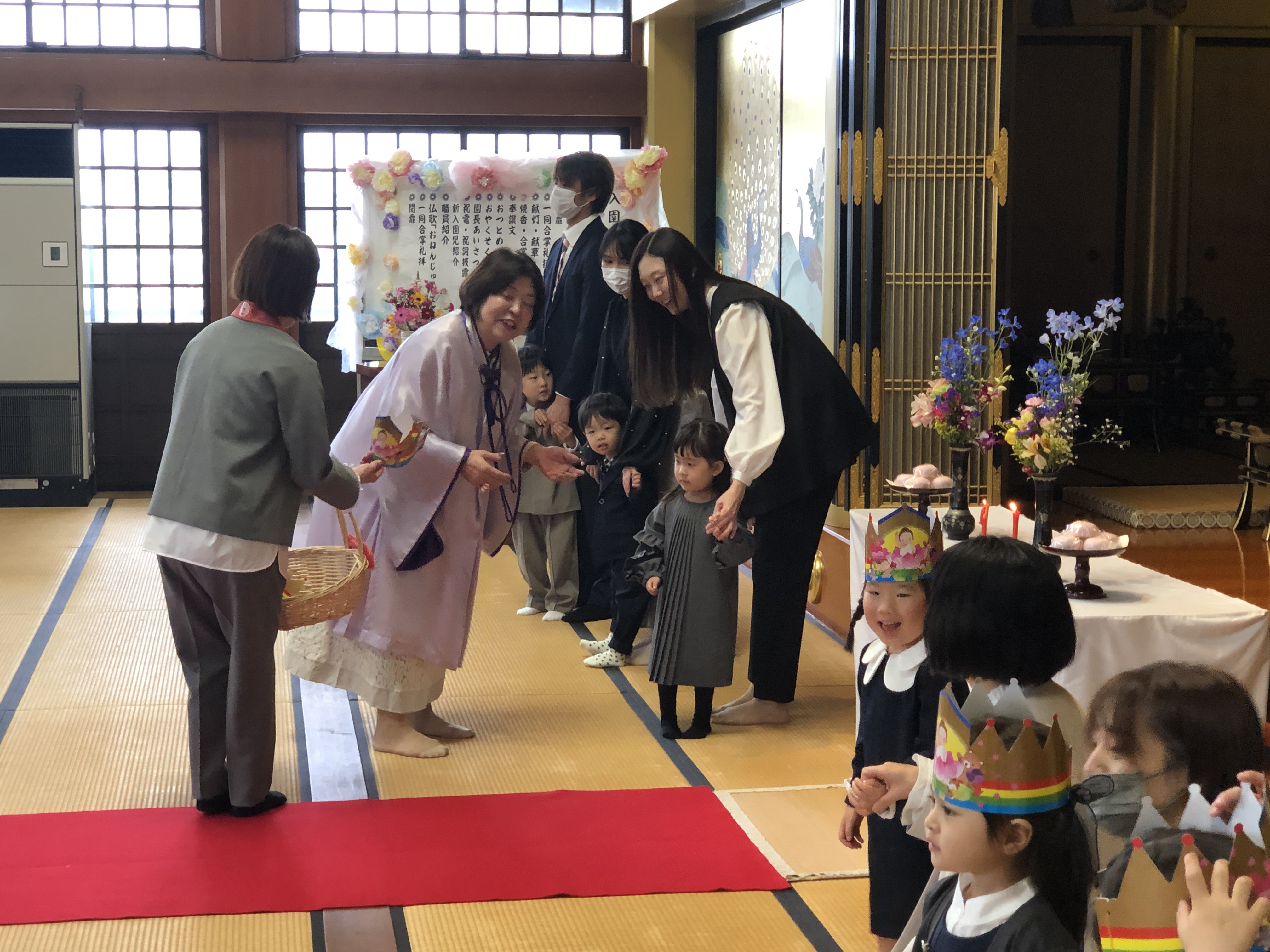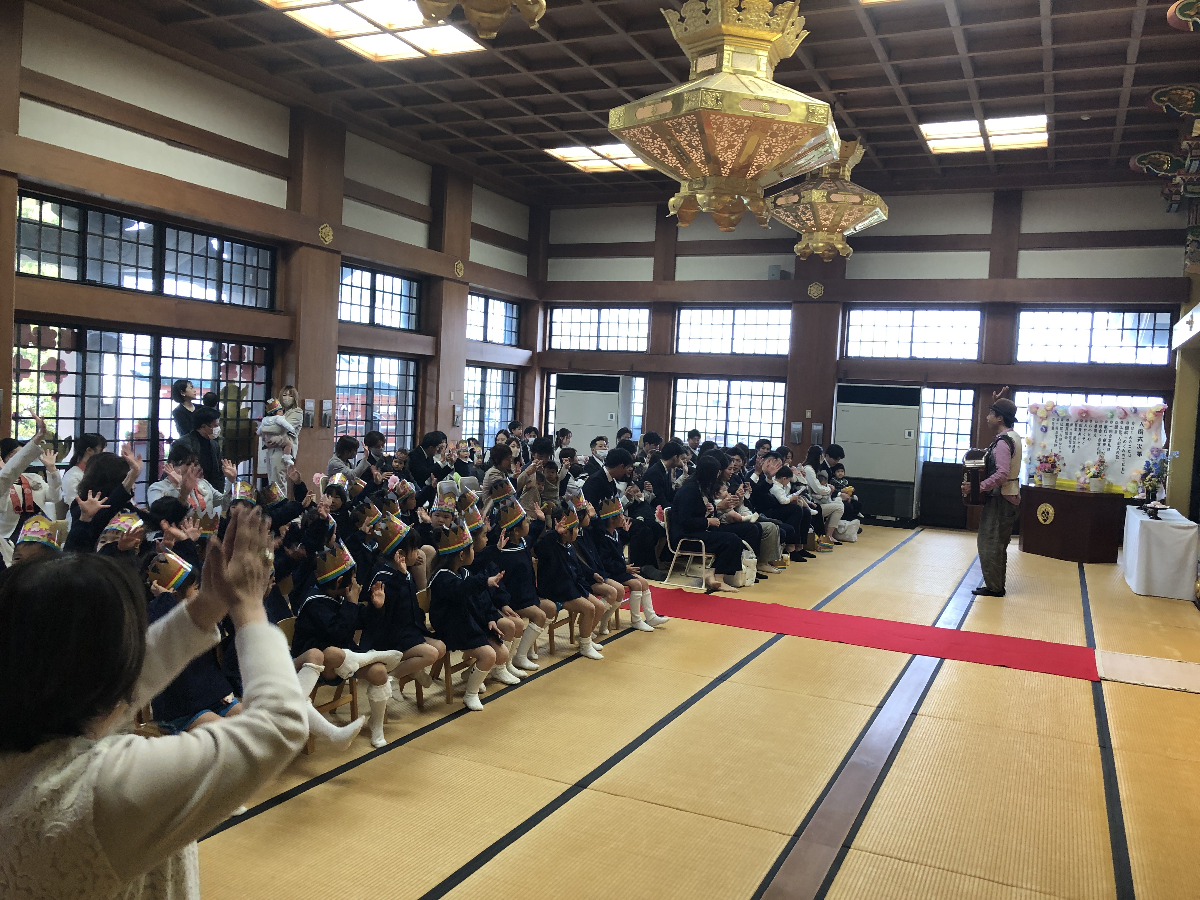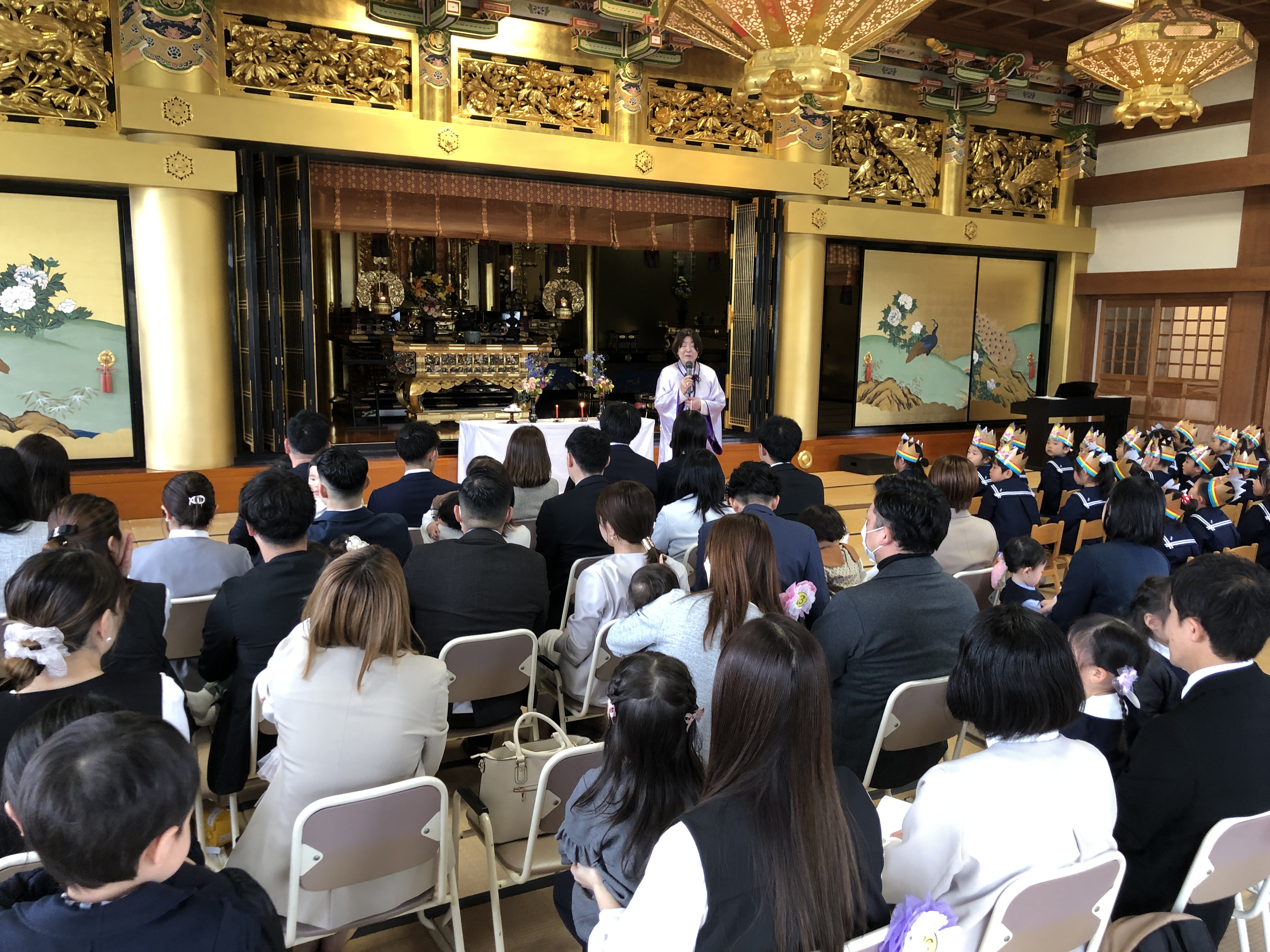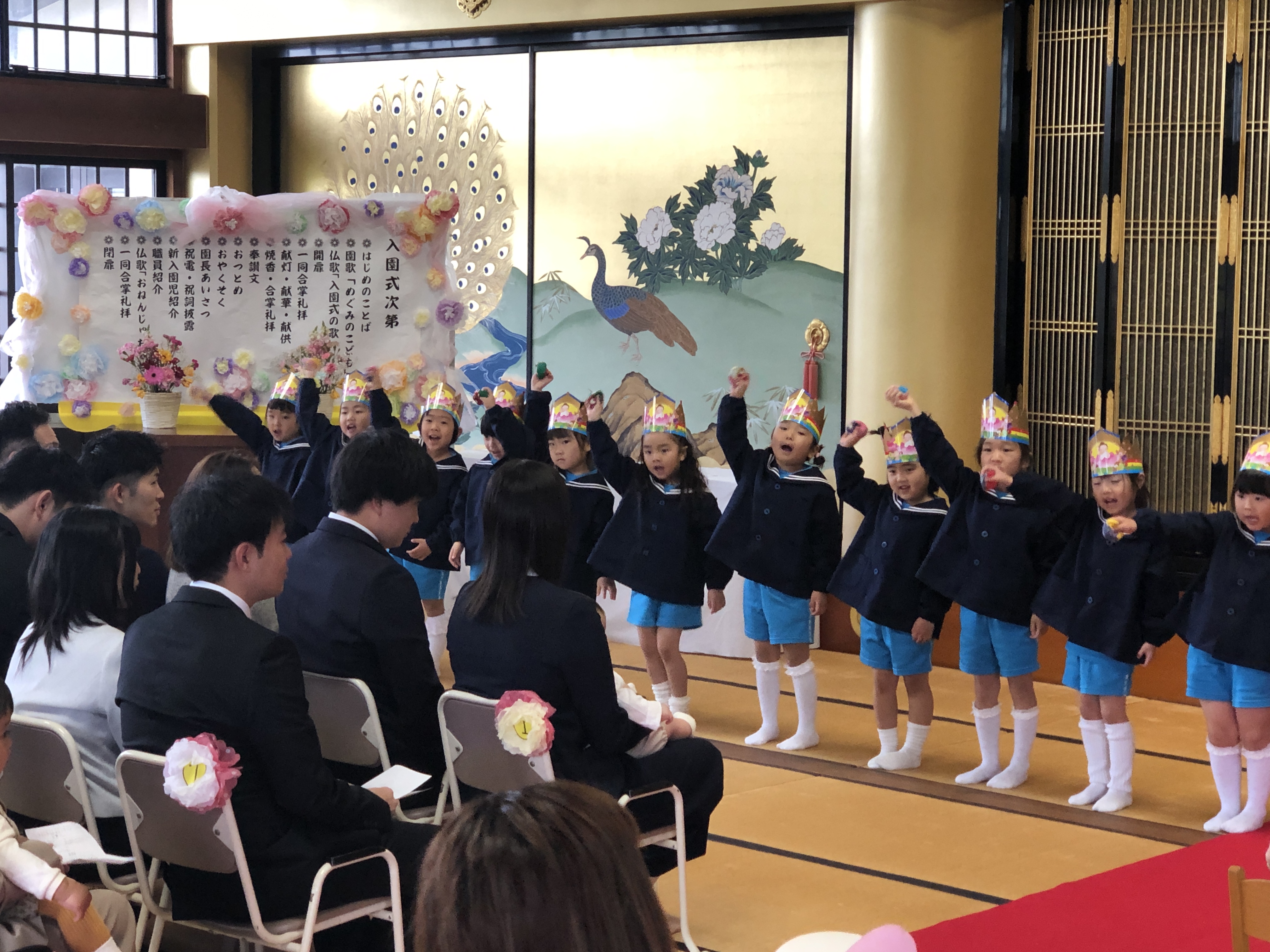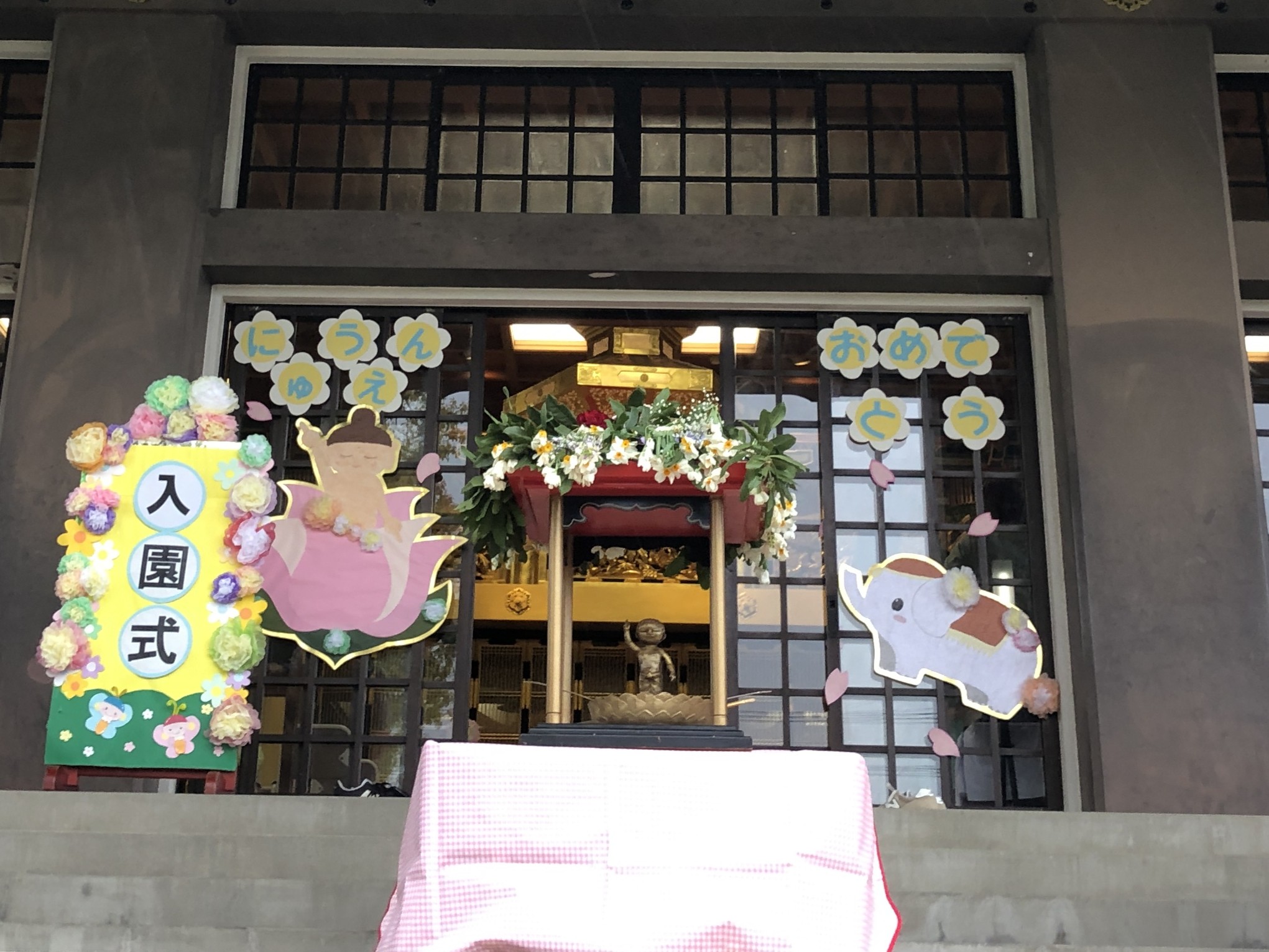 かがやく春の陽ざしと ののさま(仏様)の優しい眼差しに見守られて めぐみ保育園の令和8年度がスタートしました。今日は めぐみ保育園入園式。