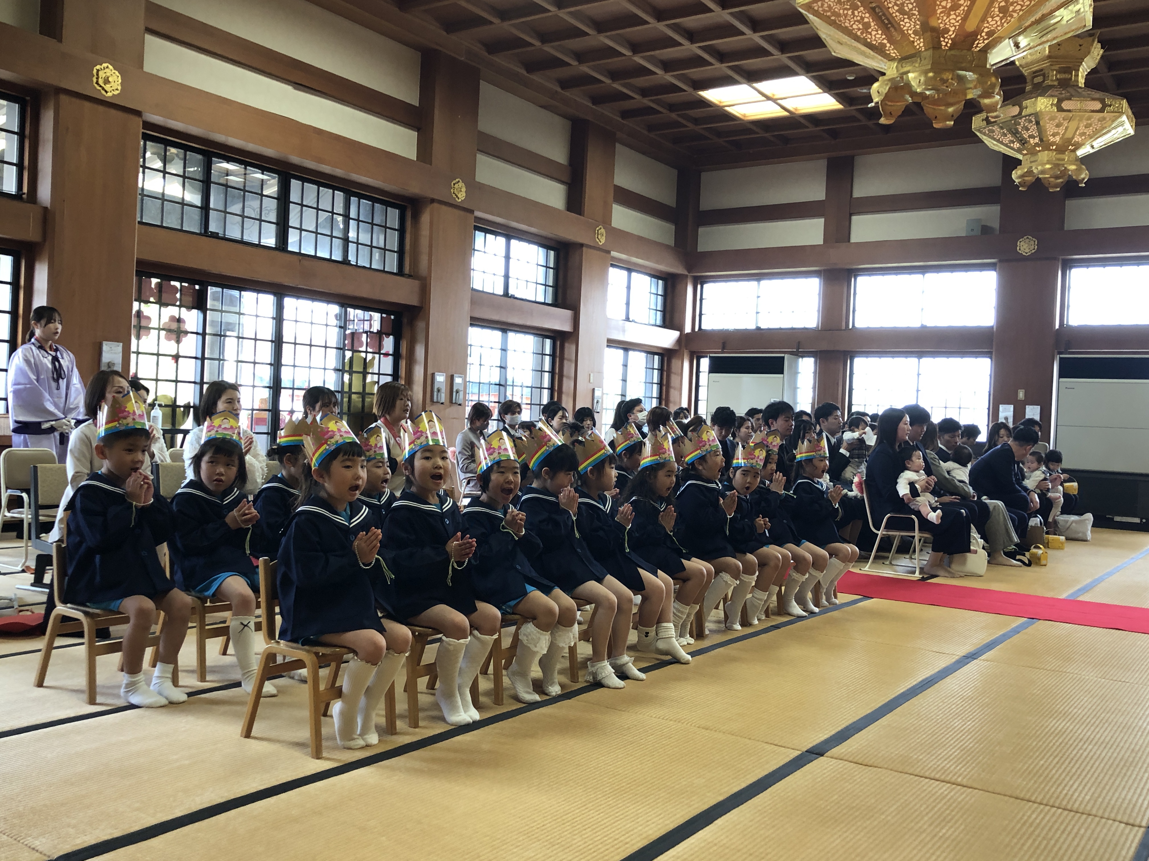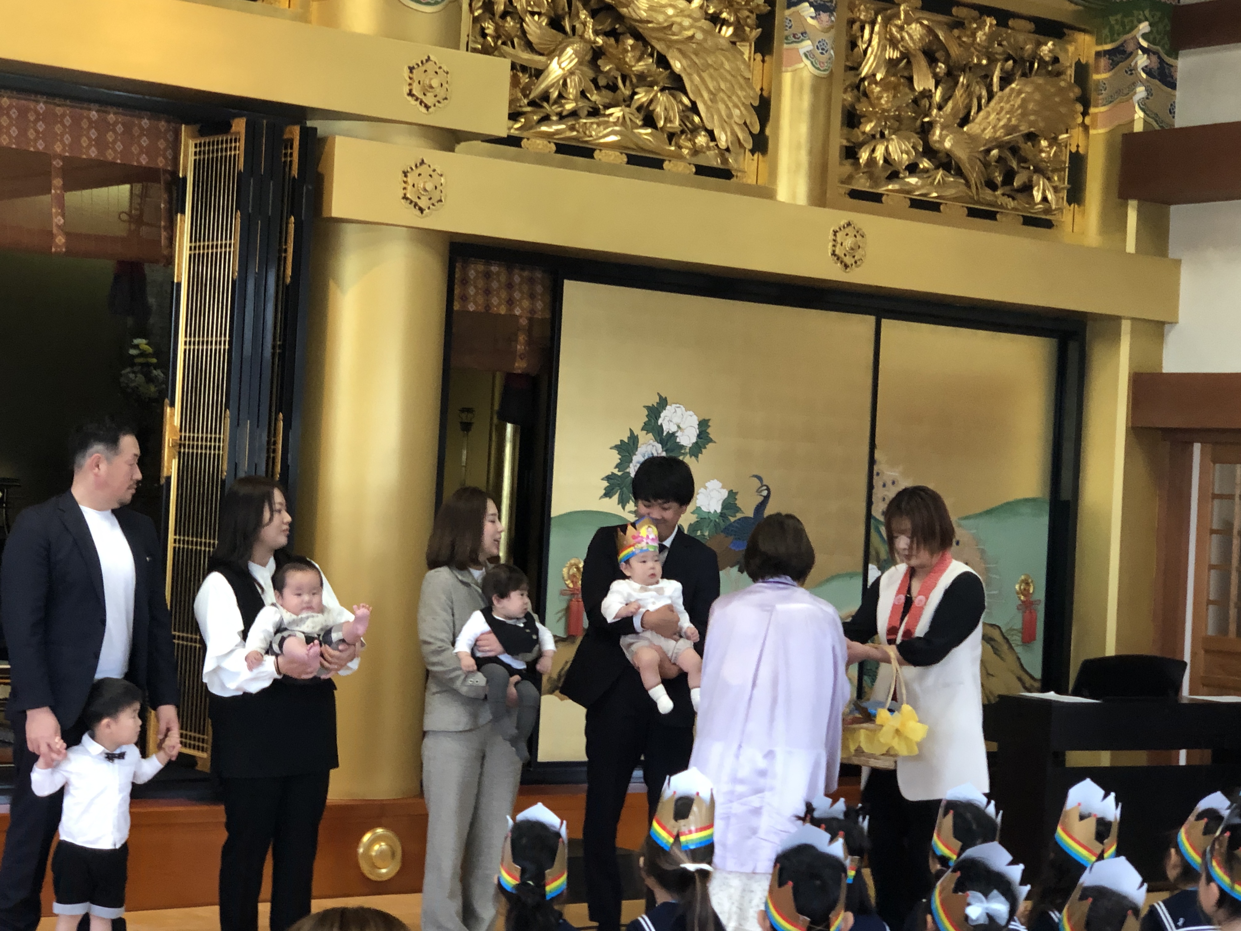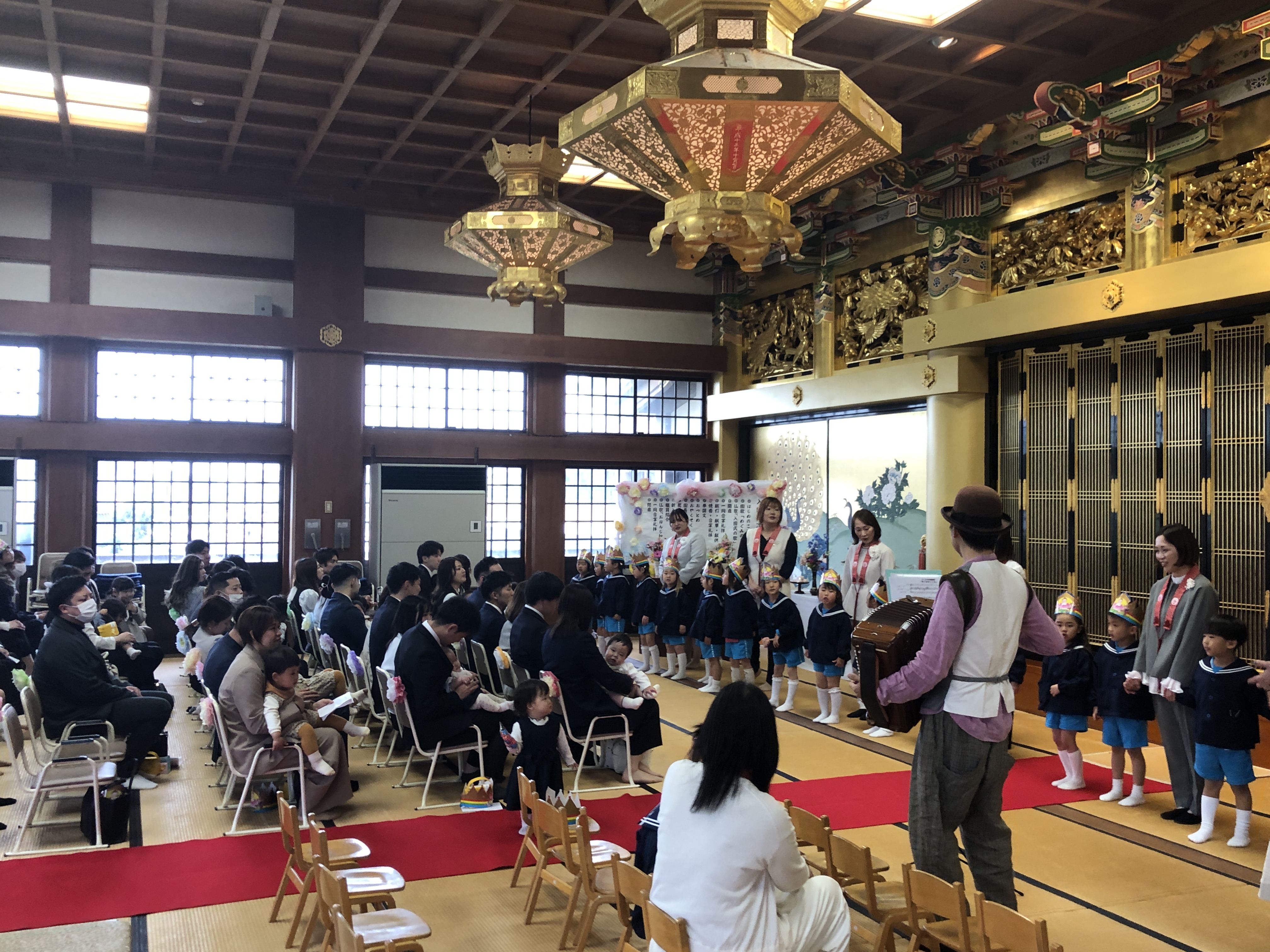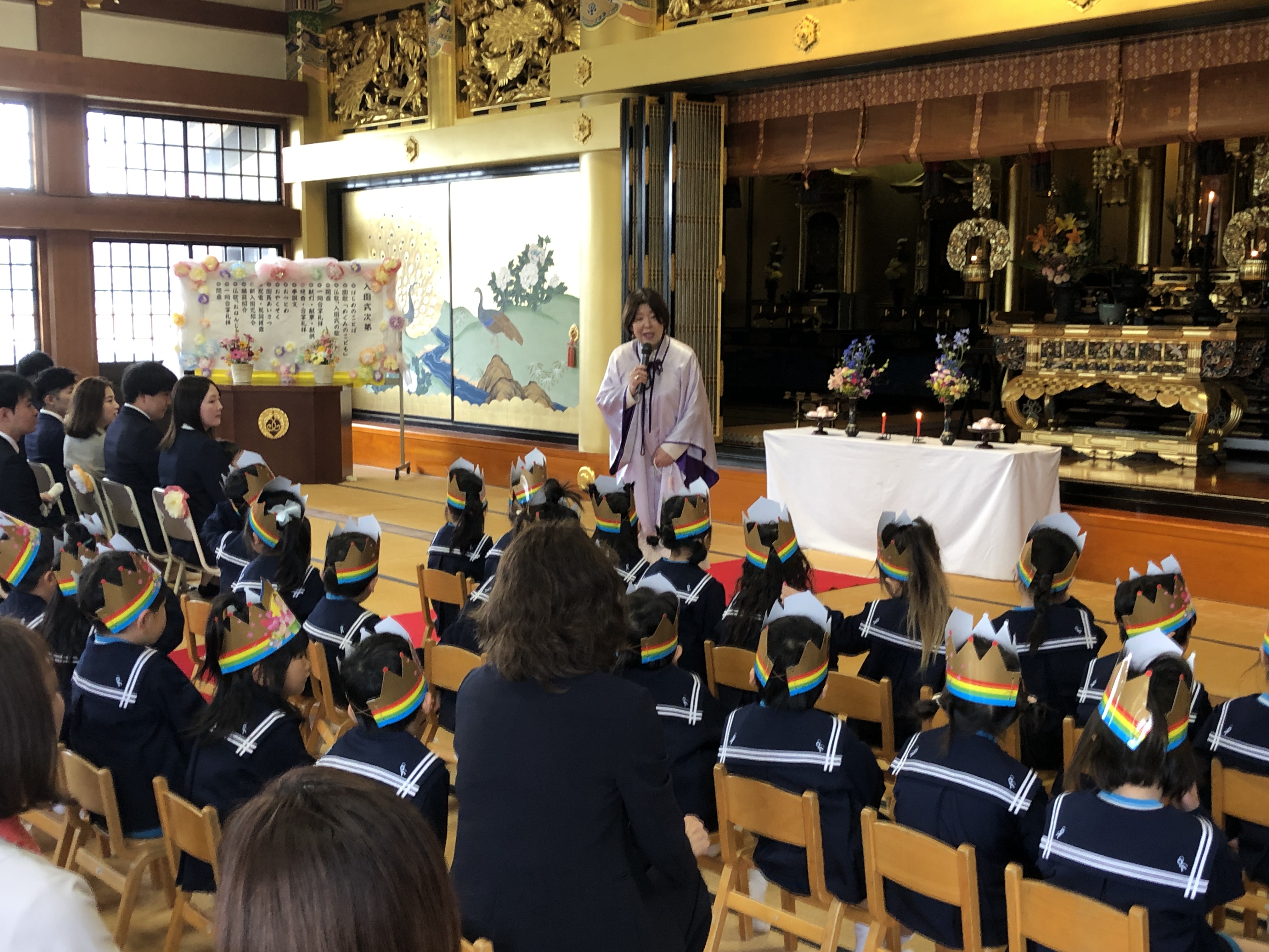 かがやく春の陽ざしと ののさま(仏様)の優しい眼差しに見守られて めぐみ保育園の令和8年度がスタートしました。今日は めぐみ保育園入園式。