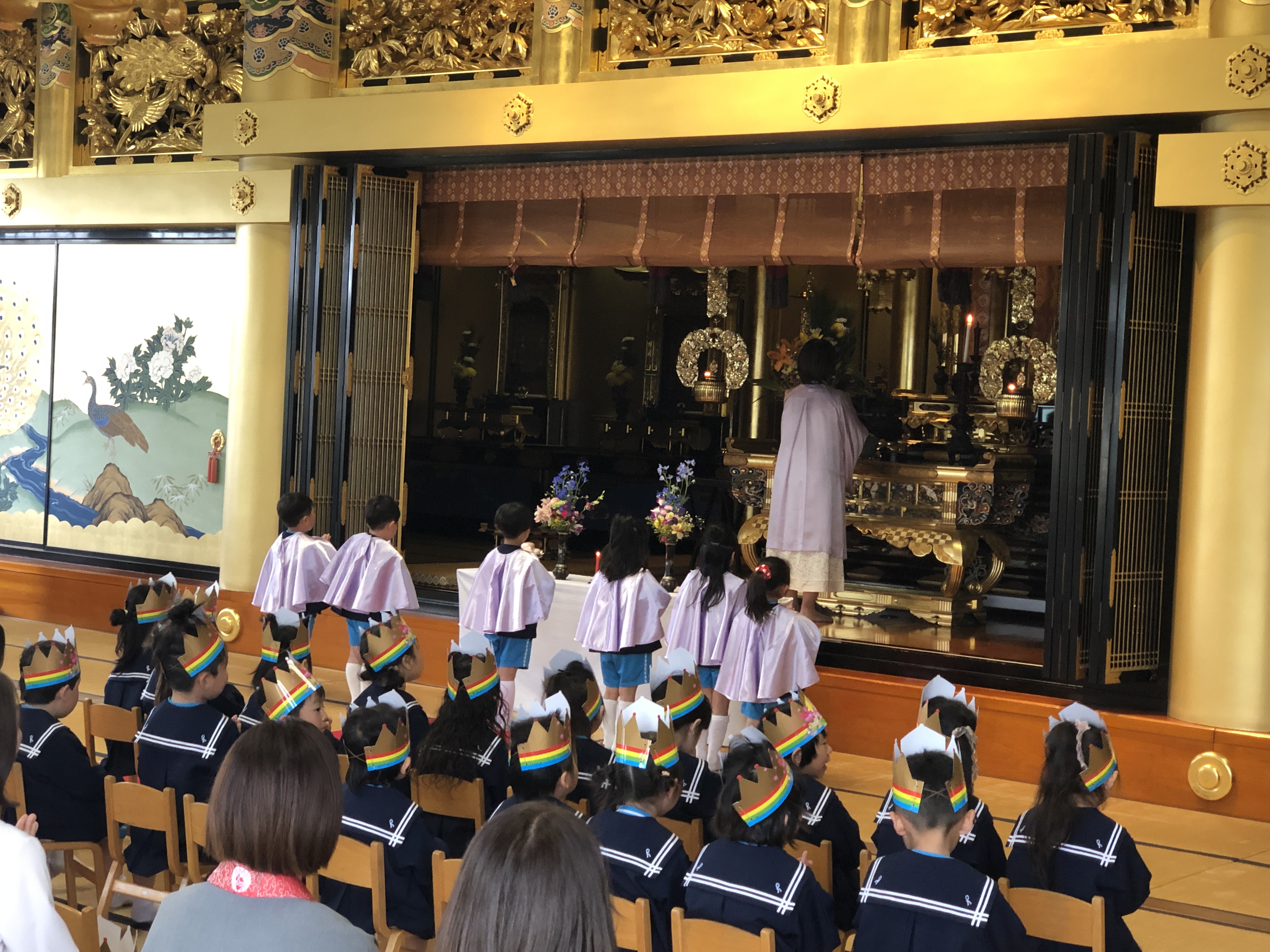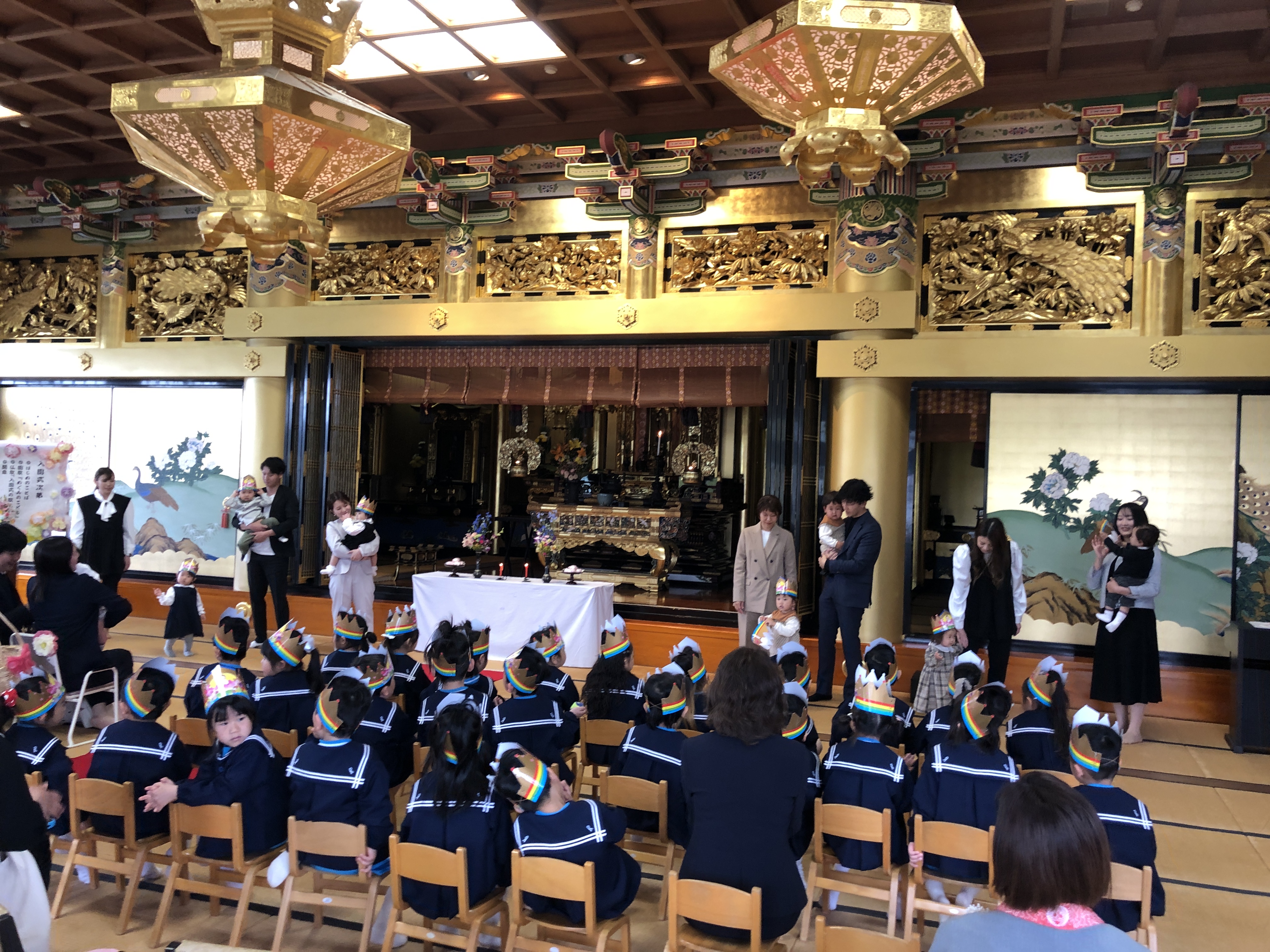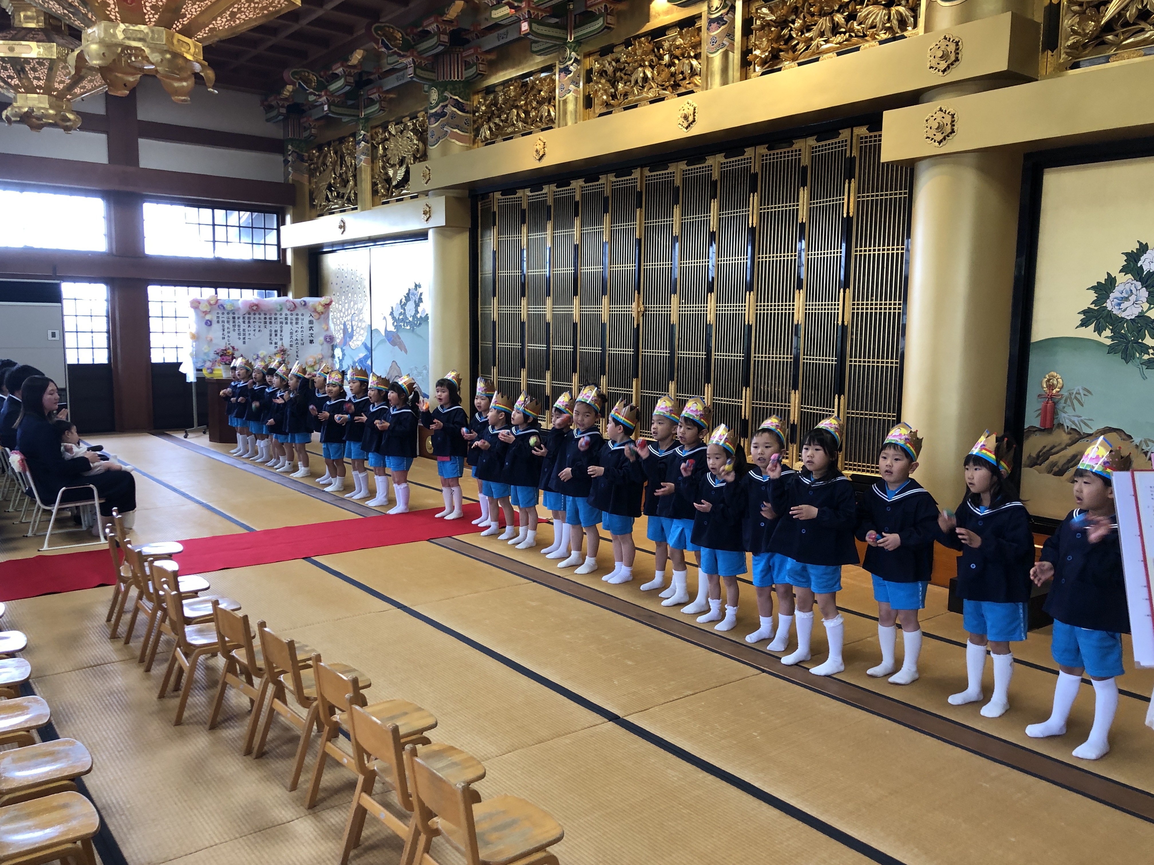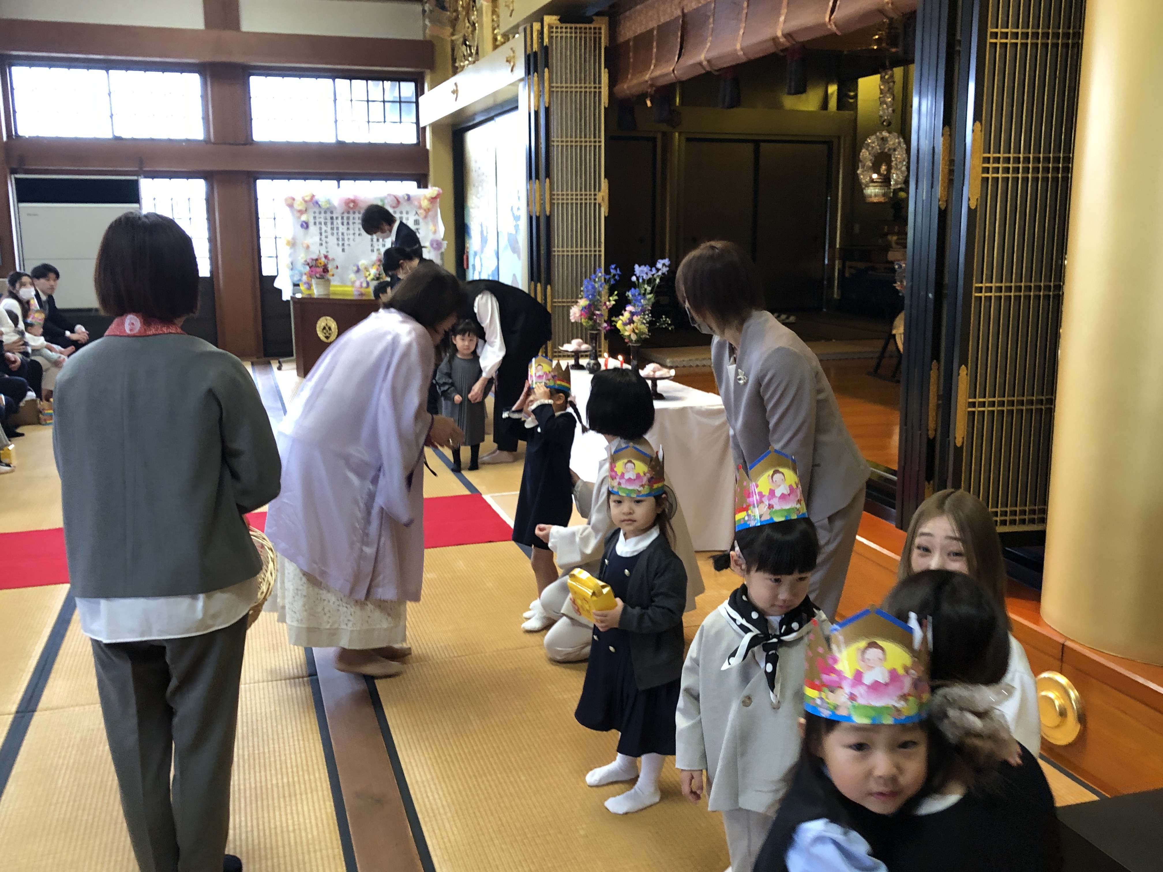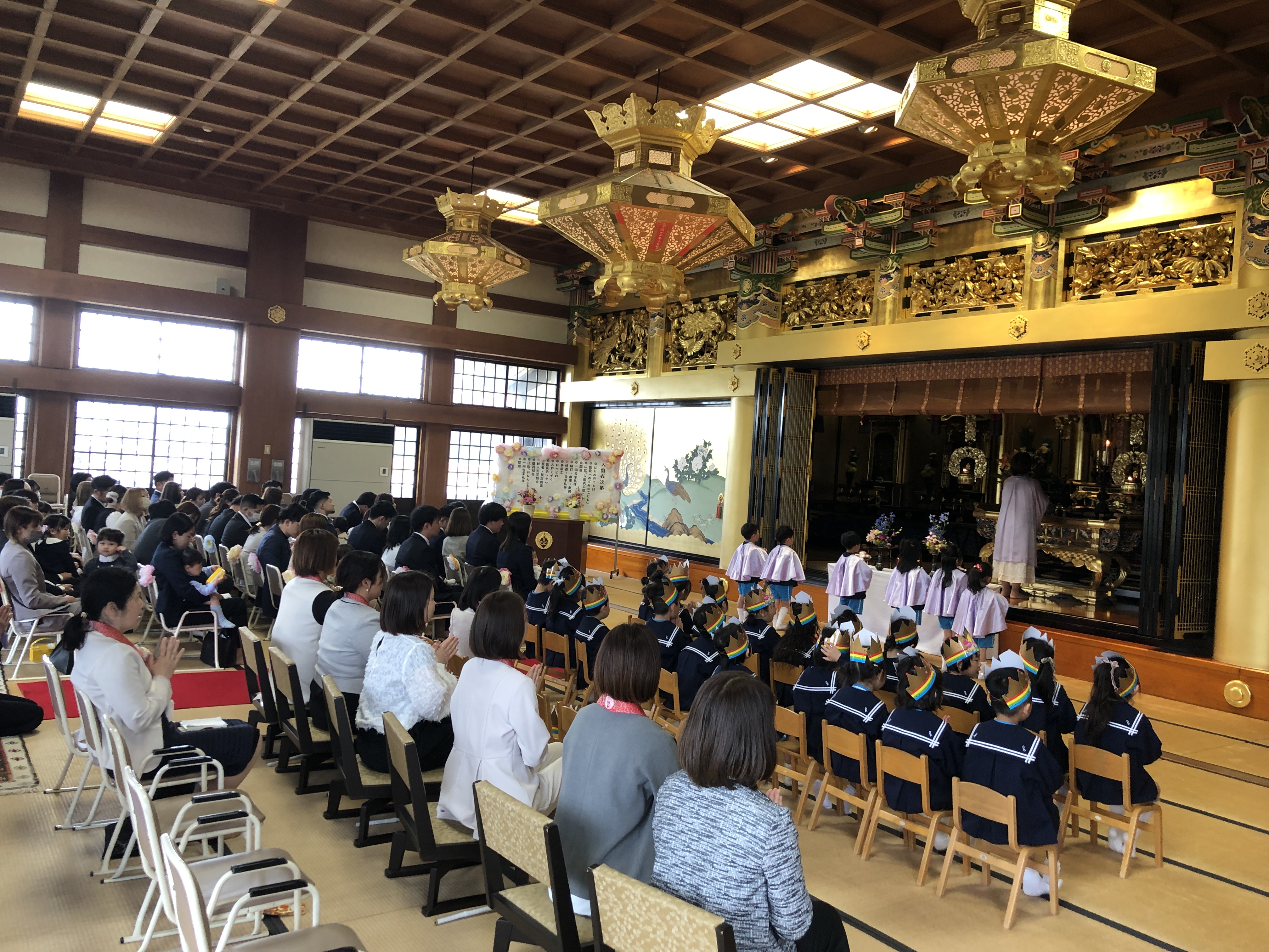 かがやく春の陽ざしと ののさま(仏様)の優しい眼差しに見守られて めぐみ保育園の令和8年度がスタートしました。今日は めぐみ保育園入園式。