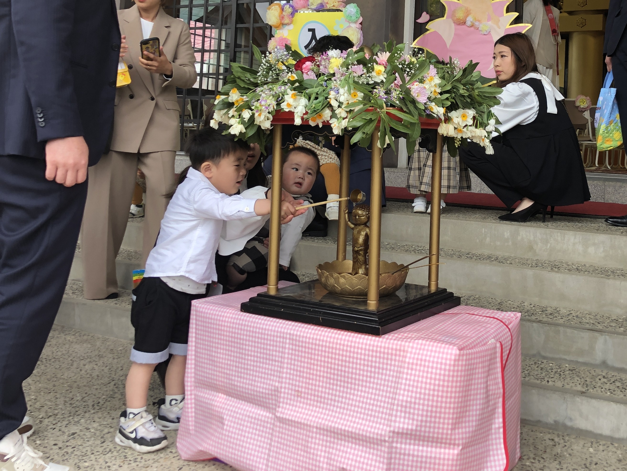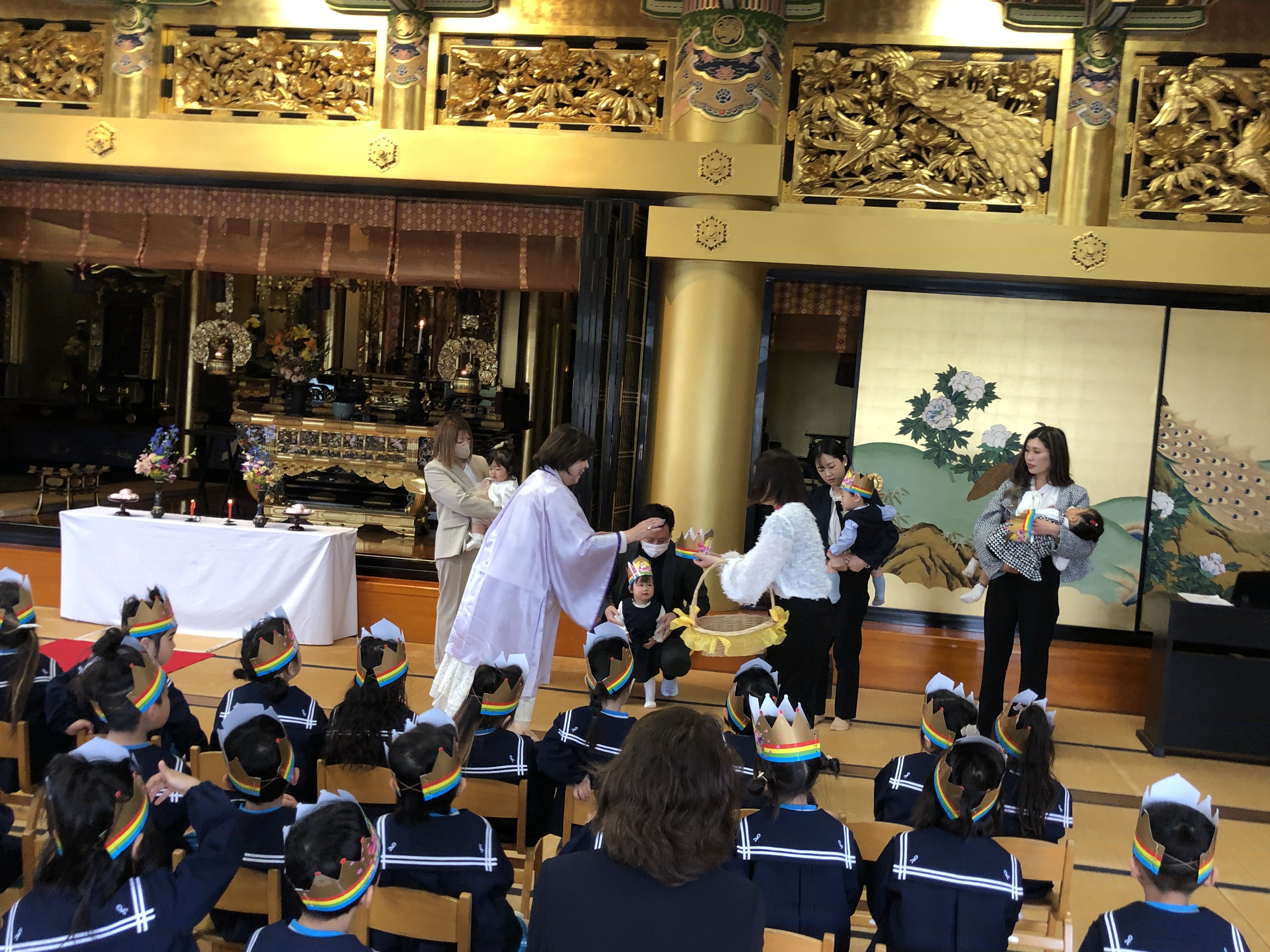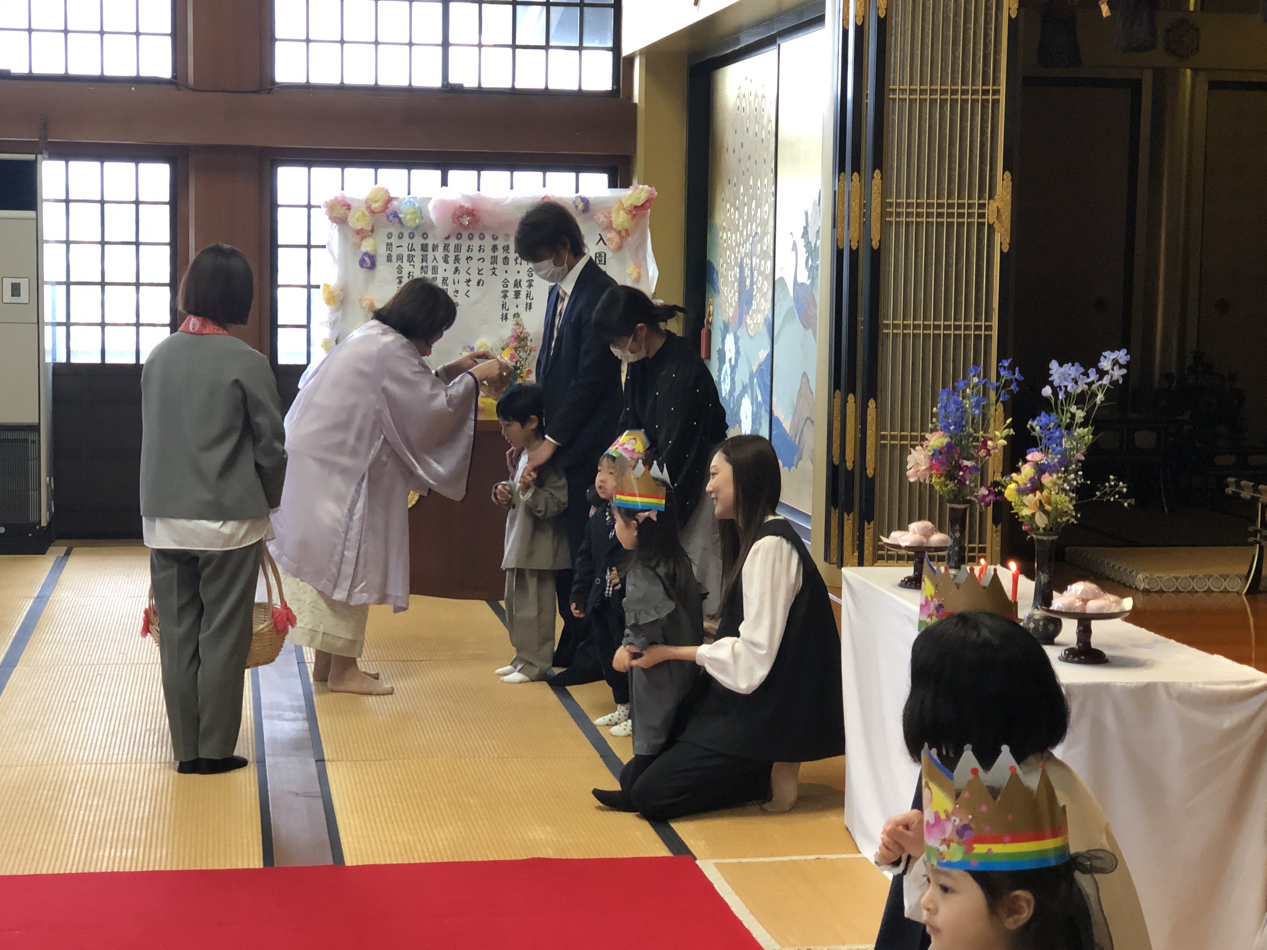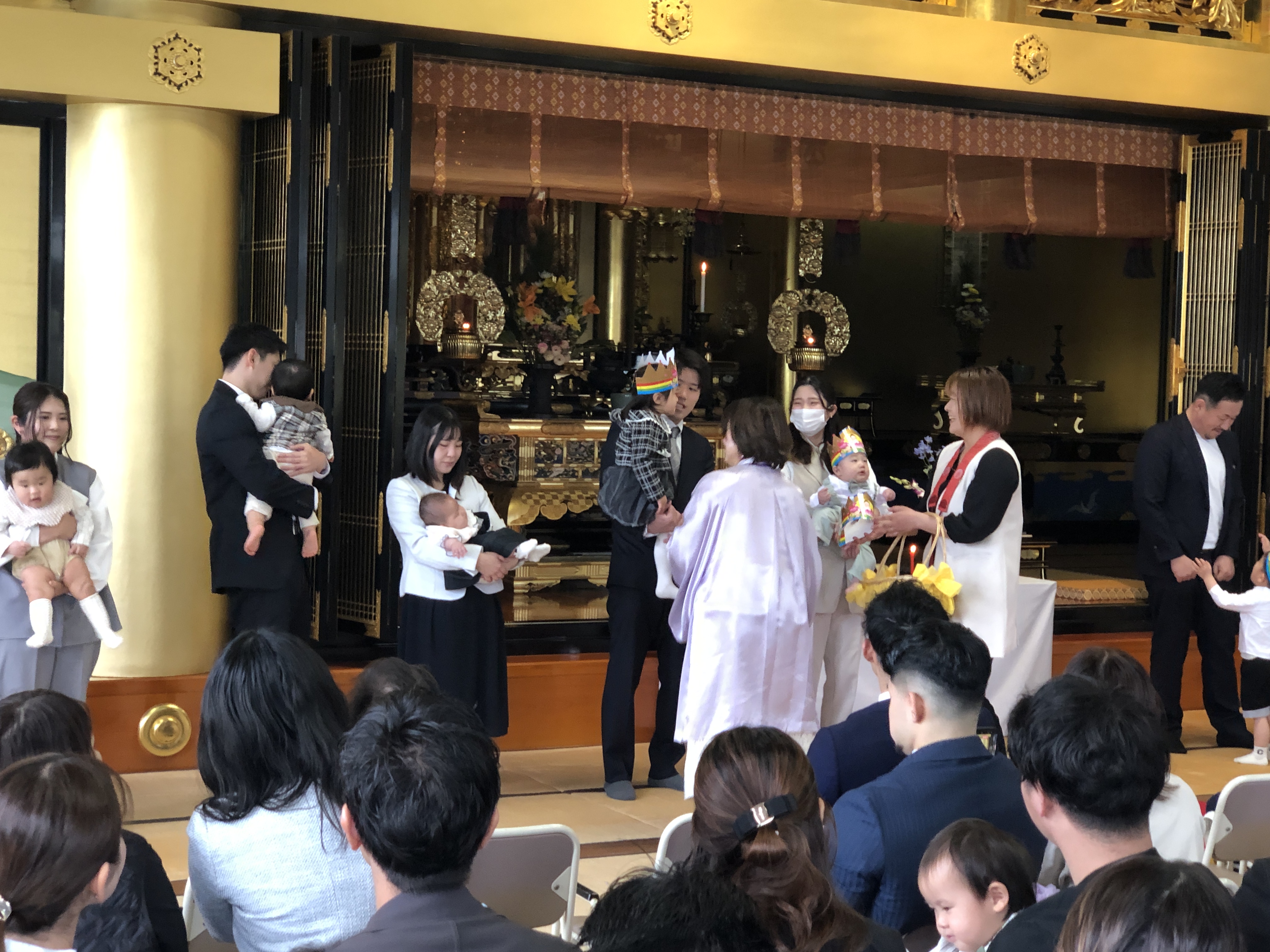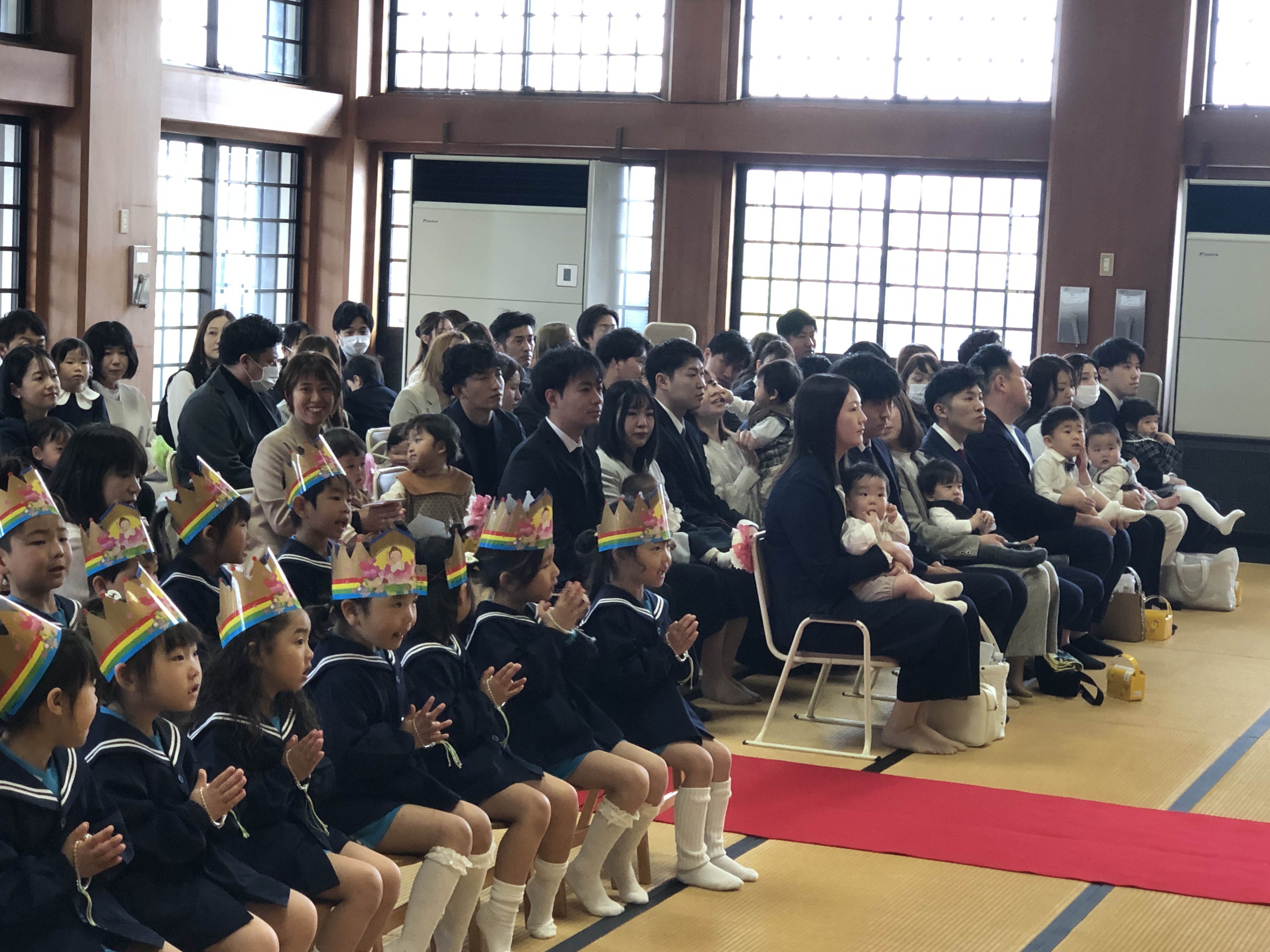 かがやく春の陽ざしと ののさま(仏様)の優しい眼差しに見守られて めぐみ保育園の令和8年度がスタートしました。今日は めぐみ保育園入園式。